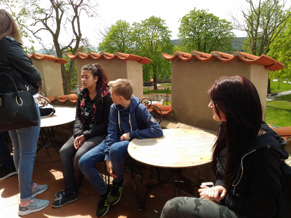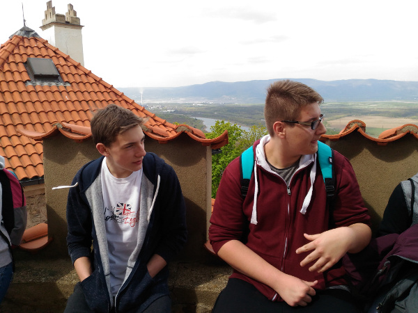 V druhé části exkurze žáci navštívili mosteckou dominantu hrad Hněvín. Zde moli navštívit vyhlídku ve věži hradu. Přestože nám počasí příliš nepřálo a bylo pod mrakem, mohli žáci vidět zámek Jezeří a kopce Bouřňák, Bořeň a Loučnou.