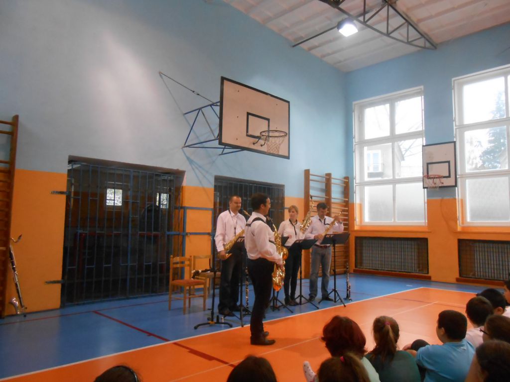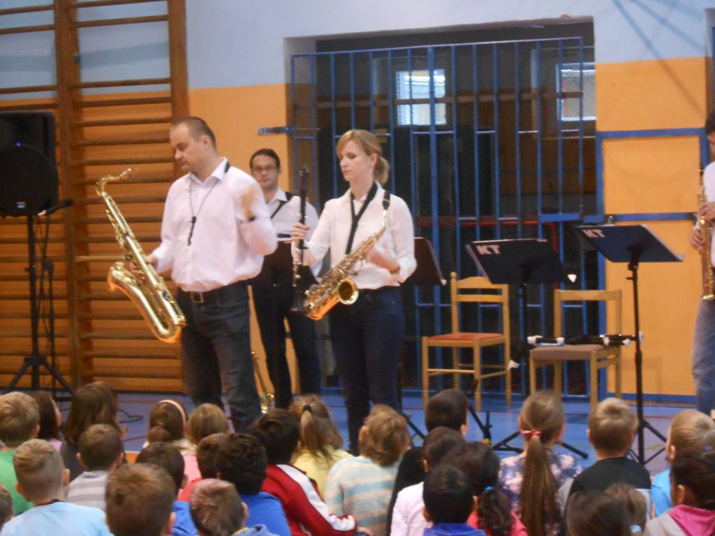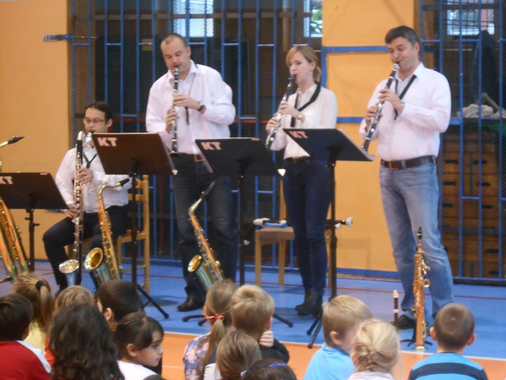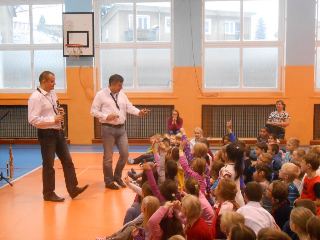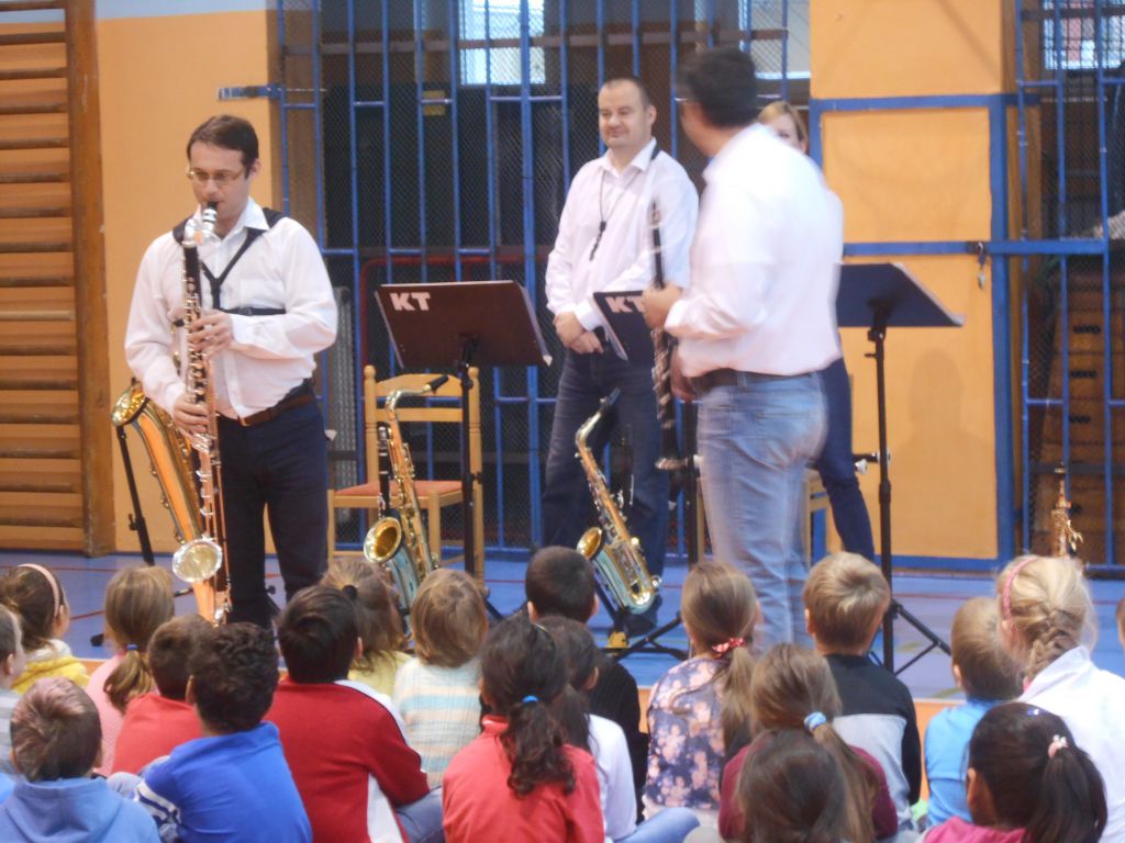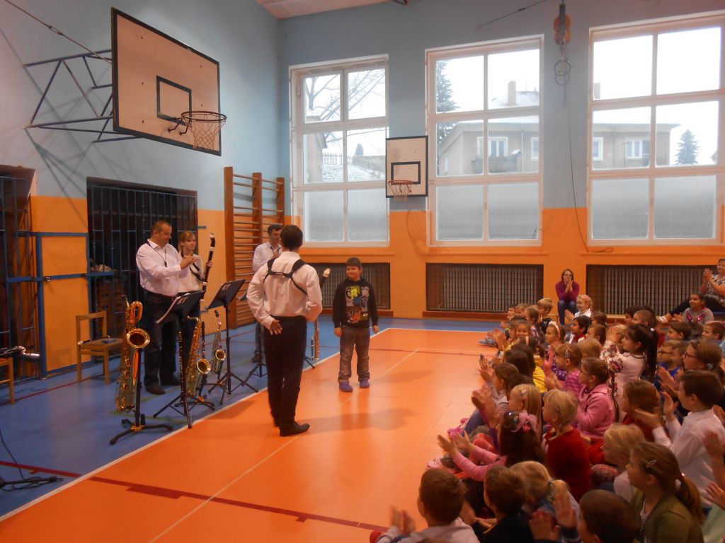 Ve čtvrtek 10. listopadu 2016 měli žáci naší školy možnost nahlédnout do práce profesionálních hudebníků. Členové souboru Harmony Quartet populární formou seznámili posluchače s rodinou dechových nástrojů, konkrétně se zobcovými flétnami, saxofony, klarinetem a basklarinetem. Celý program byl založený především na aktivním poslechu populární hudby / jazzové, muzikálové, rockové, swingové / a na vlastním zapojení dětí do akce. Pořad dostal od žáků i učitelů vynikající hodnocení.