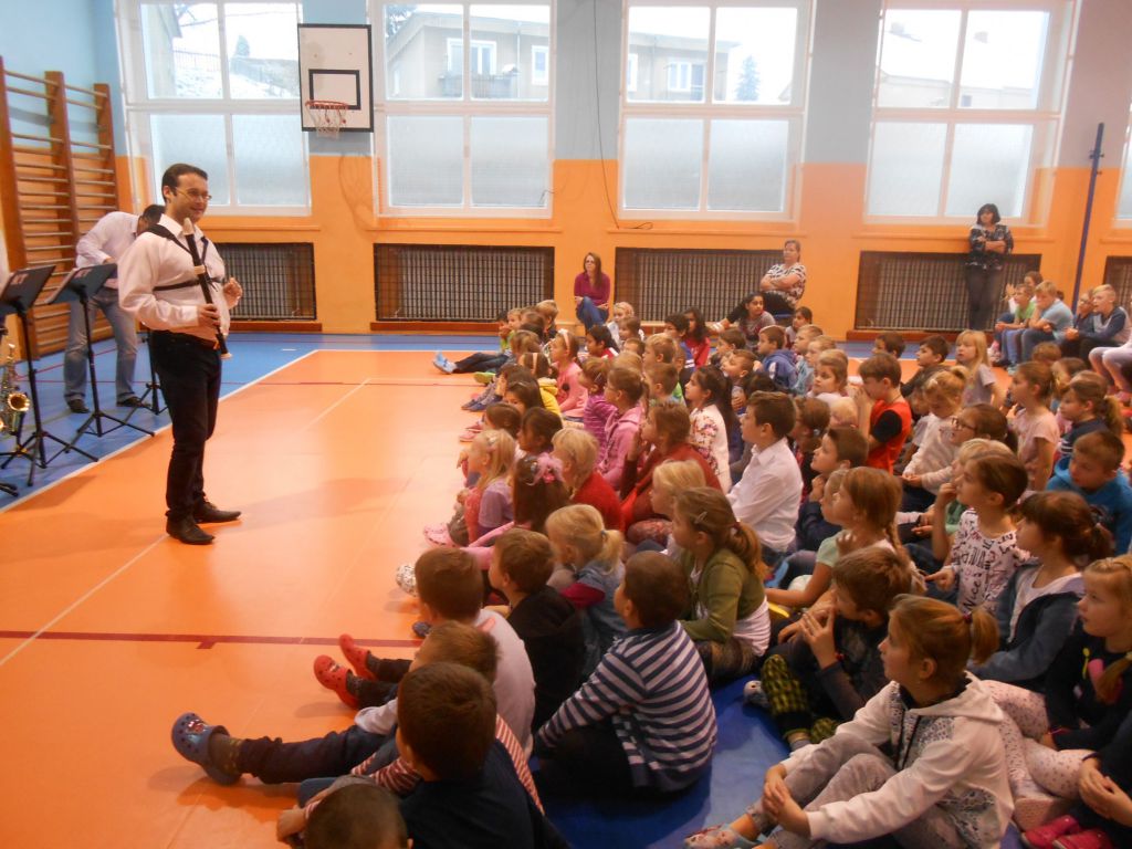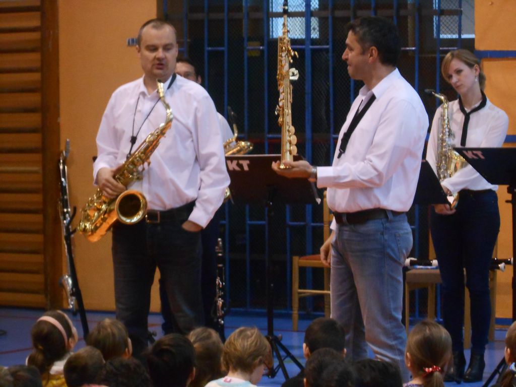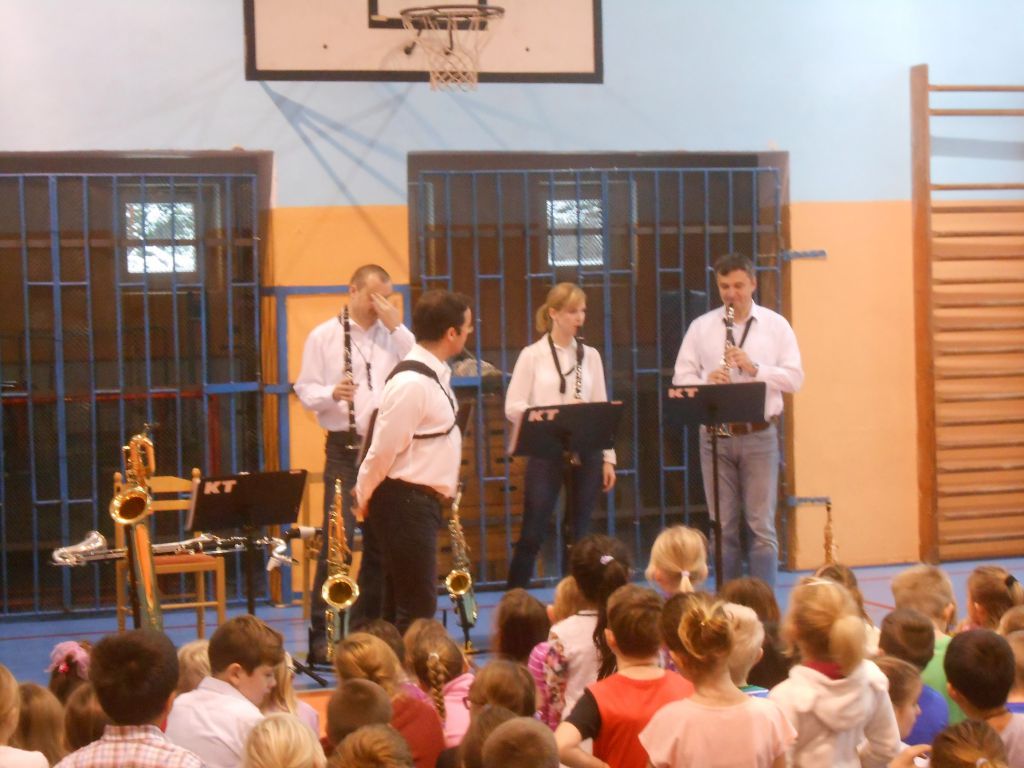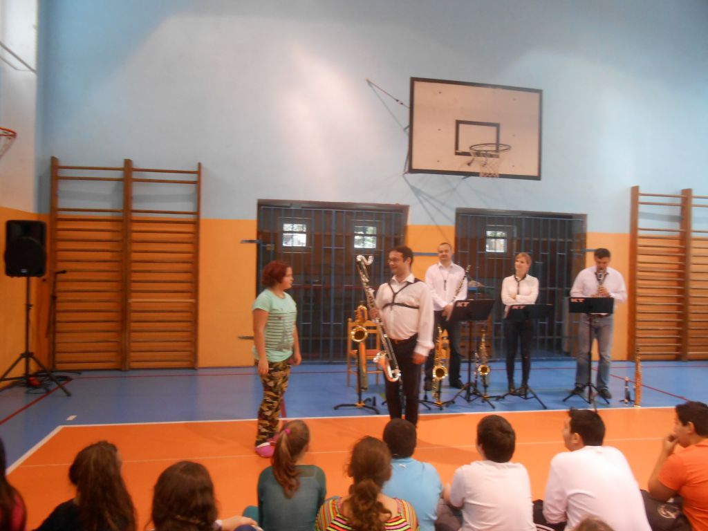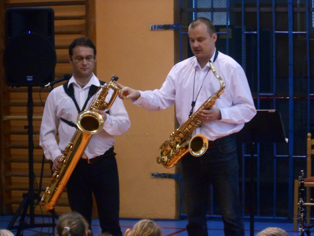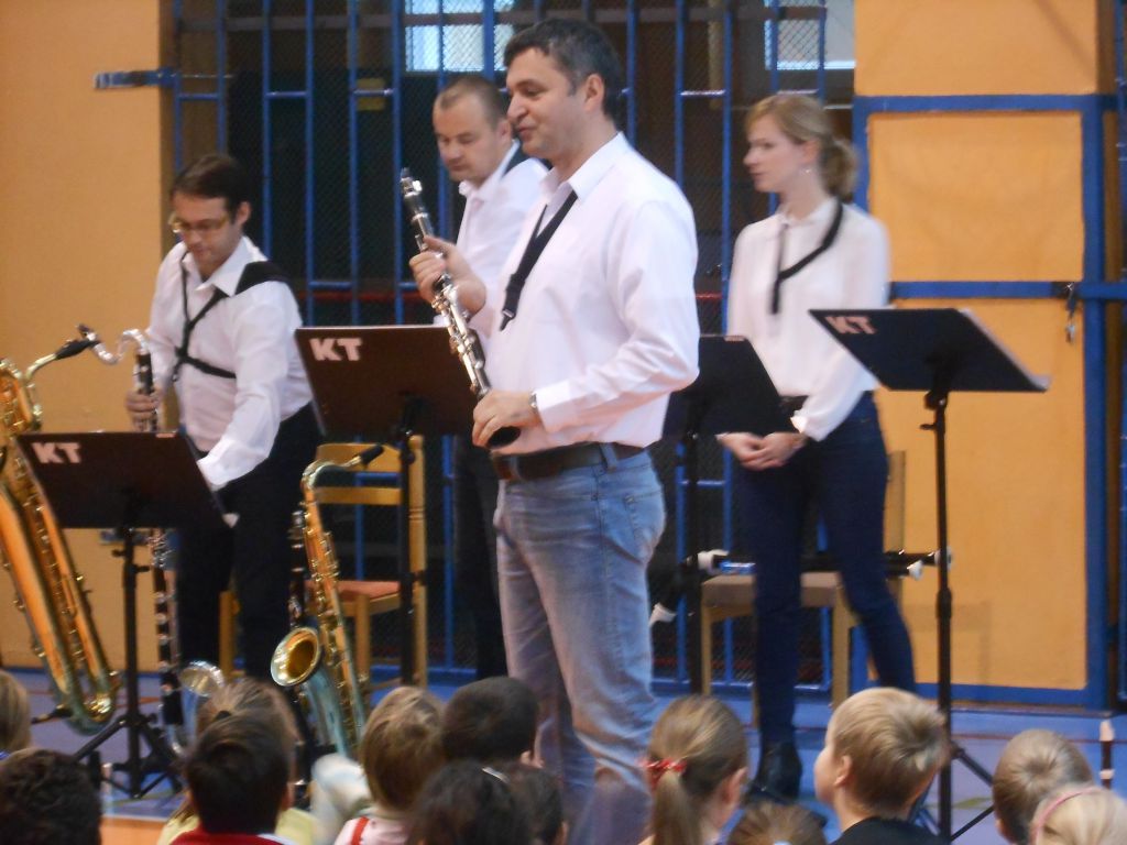 Ve čtvrtek 10. listopadu 2016 měli žáci naší školy možnost nahlédnout do práce profesionálních hudebníků. Členové souboru Harmony Quartet populární formou seznámili posluchače s rodinou dechových nástrojů, konkrétně se zobcovými flétnami, saxofony, klarinetem a basklarinetem. Celý program byl založený především na aktivním poslechu populární hudby / jazzové, muzikálové, rockové, swingové / a na vlastním zapojení dětí do akce. Pořad dostal od žáků i učitelů vynikající hodnocení.