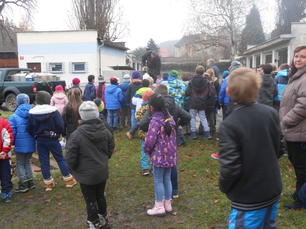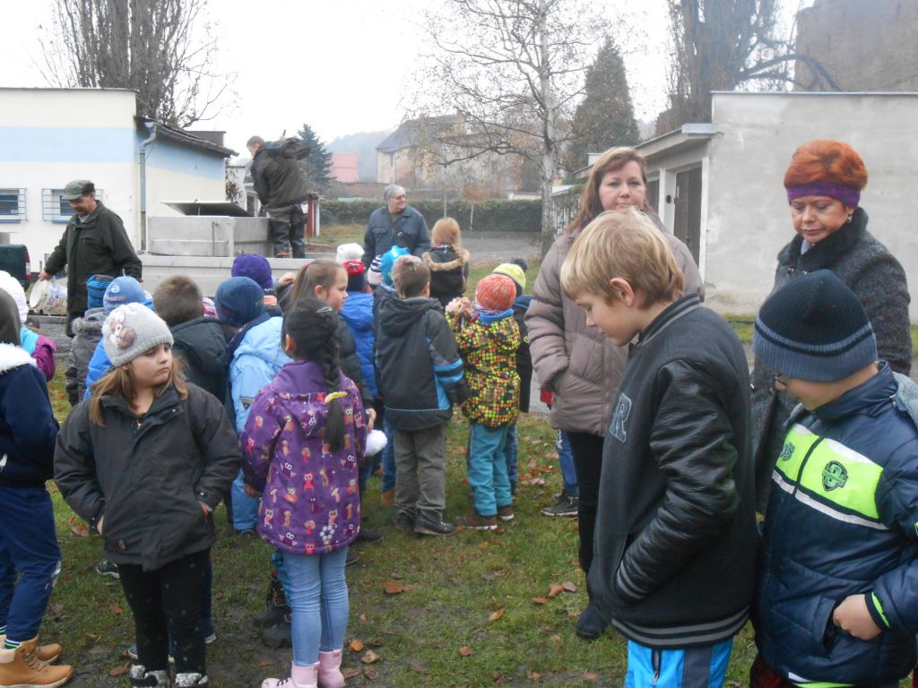 Dne 16.11. se žáci 1.stupně (mimo prvňáků) zúčastnili vypouštění ryb do řeky Bíliny. Akce byla opakovaná, máme s ní dobré zkušenosti. I když nám počasí nepřálo, bylo poněkud blátivo a sychravo, dětem se akce líbila. Každý, kdo chtěl, si mohl vyzkoušet vypustit ryby do řeky. Rybáři jim ukazovali různé druhy ryb.