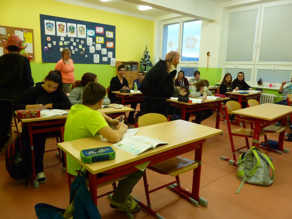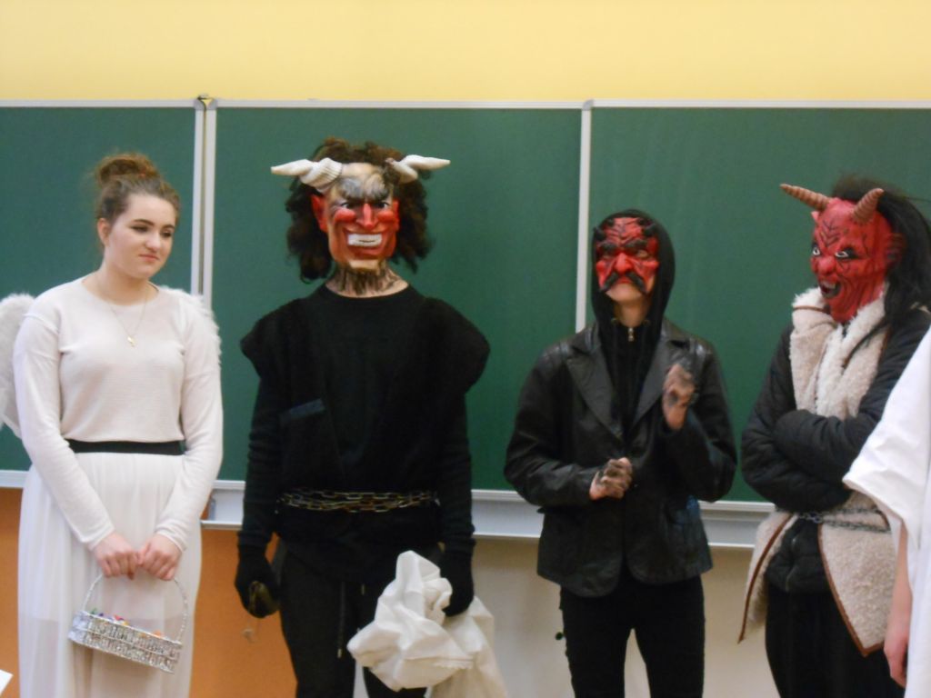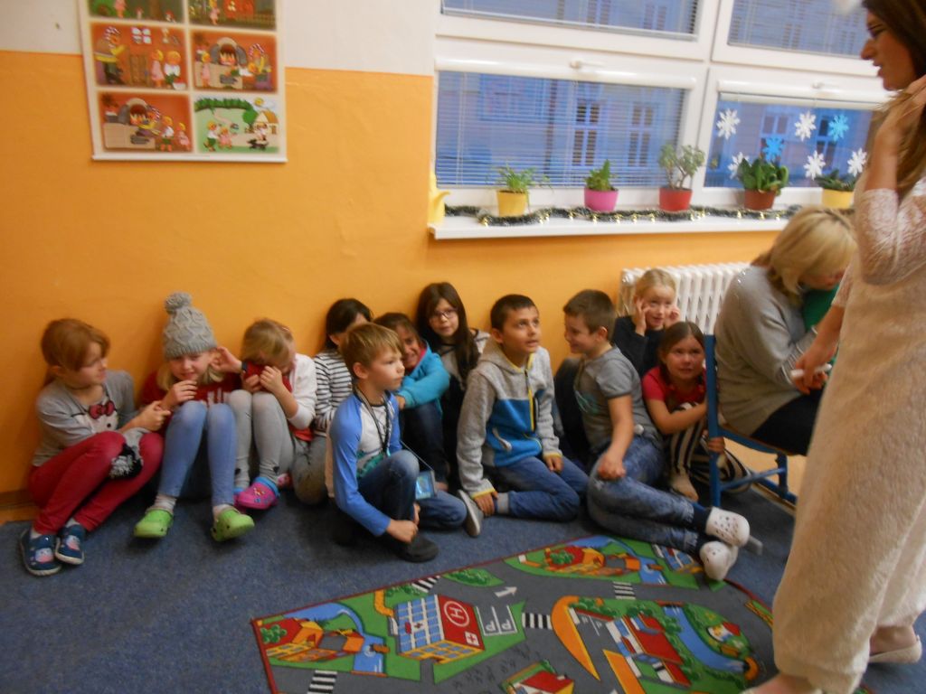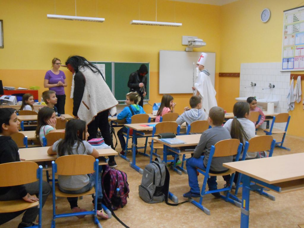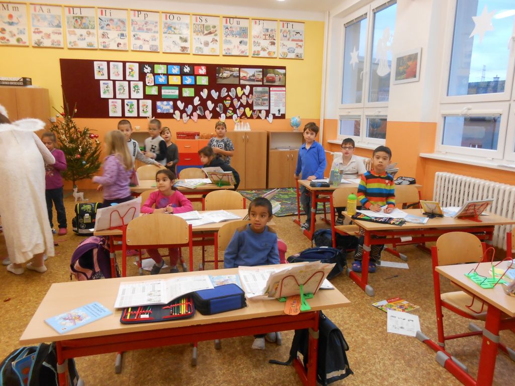 V každé třídě musely děti zazpívat, zarecitovat, vyprávět krátký příběh. Po té je andělé odměnili . Členové obou skupin se na každoroční akci předem připravili – tvorba masek, převleků. Děkujeme.