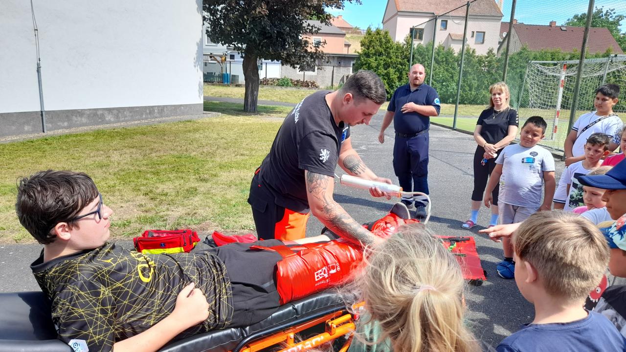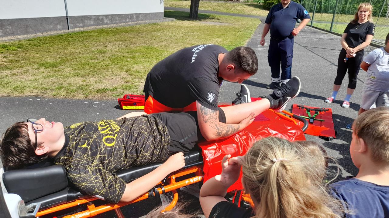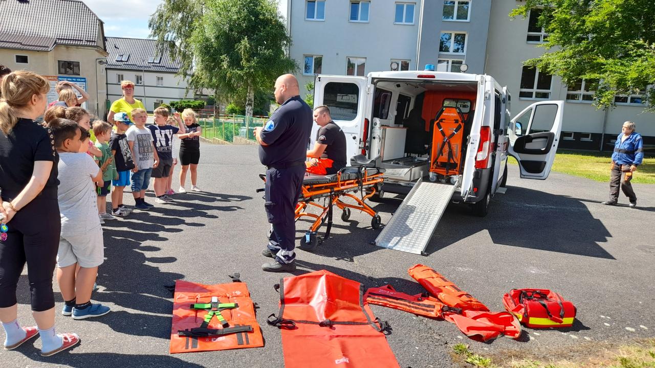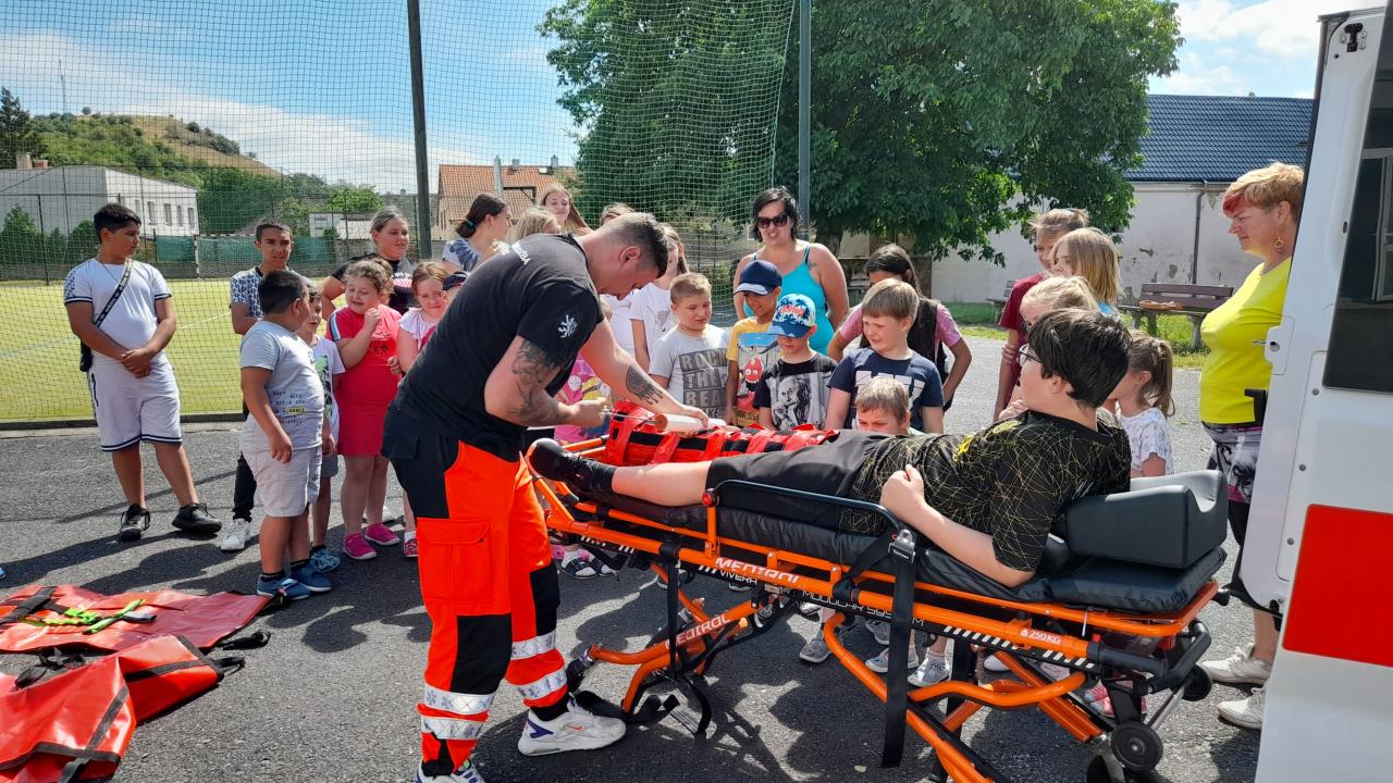 Záchranáři seznámili děti s druhy sanitek a jejich vybavením. Informovali je o různých způsobech 1.pomoci