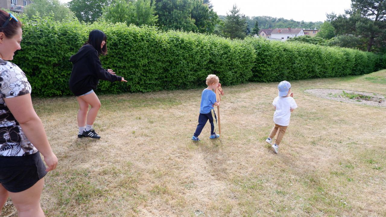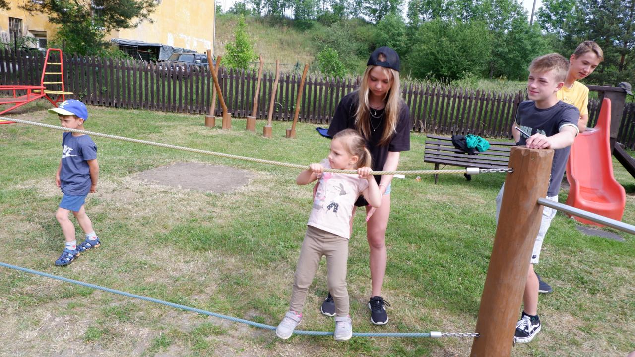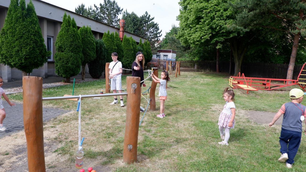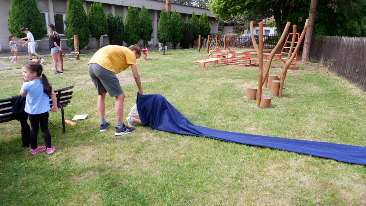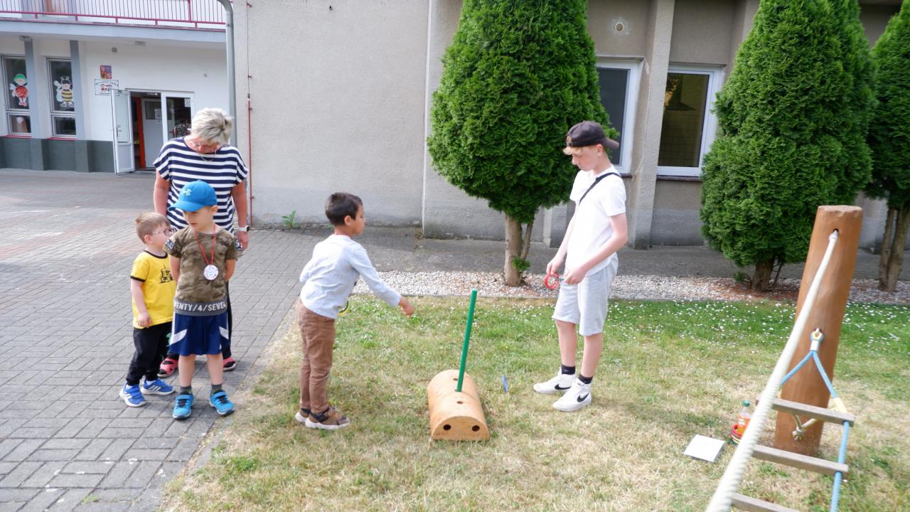Žáci 8.B pomáhali organizovat oslavu Dne dětí v Mateřské škole v Hostomicích.