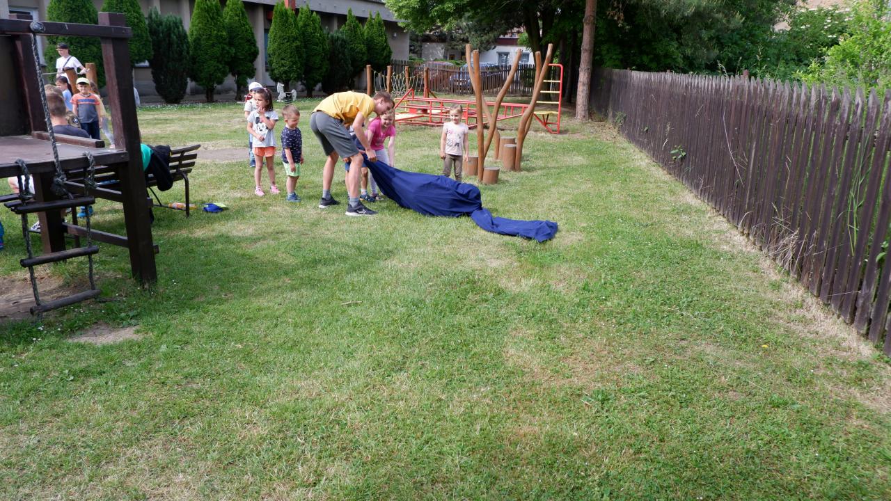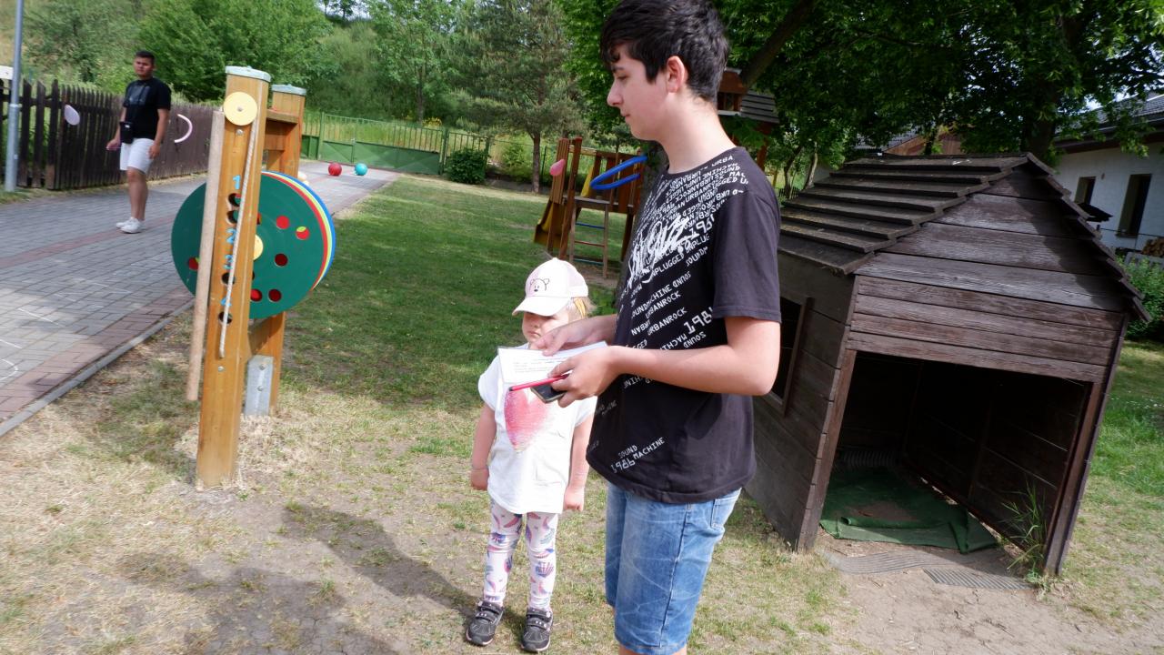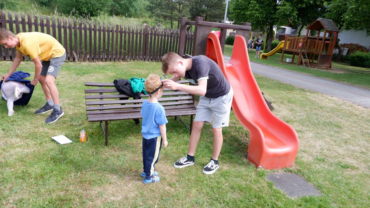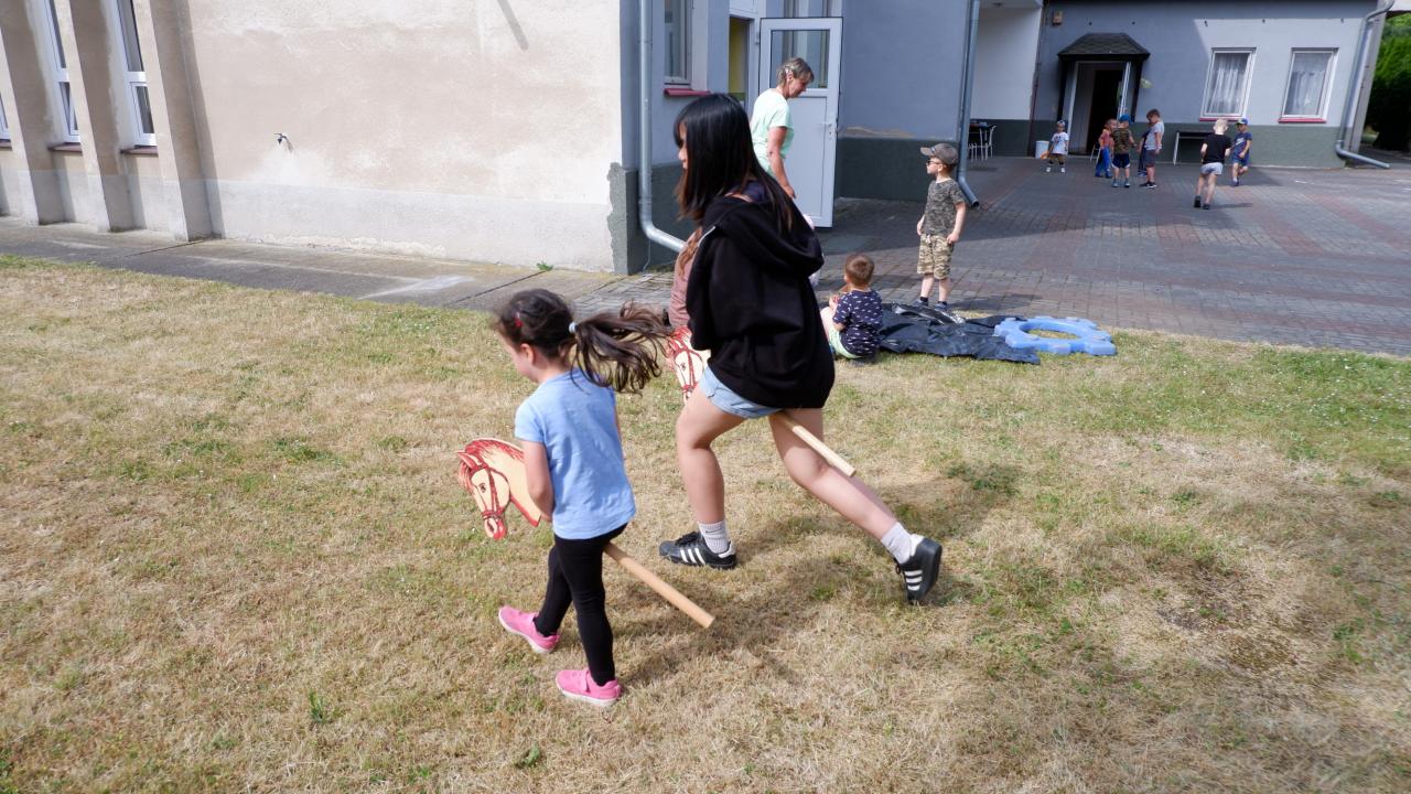 Žáci 8.B pomáhali organizovat oslavu Dne dětí v Mateřské škole v Hostomicích.