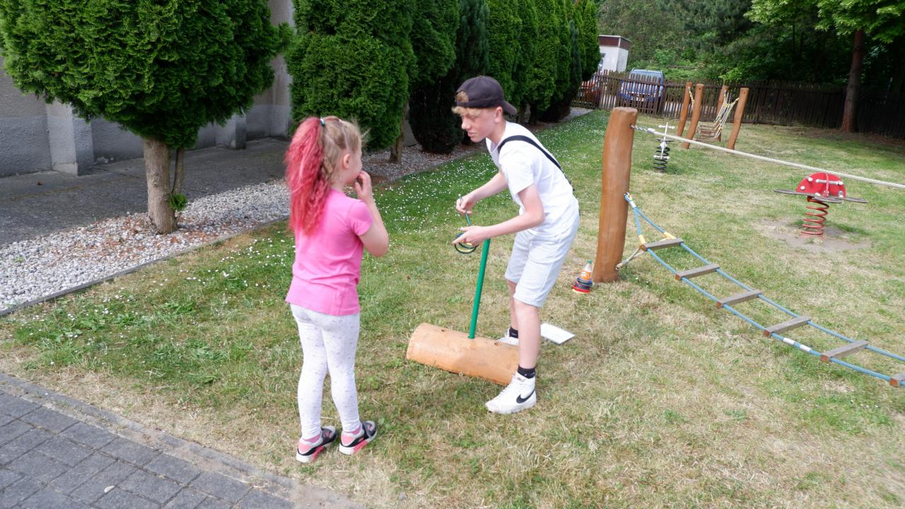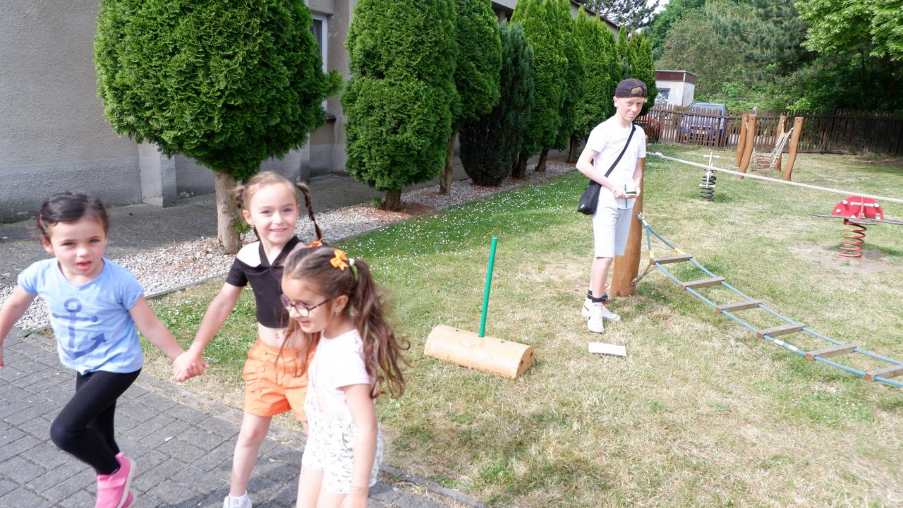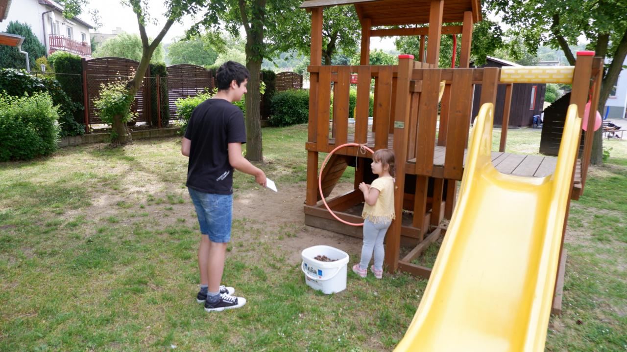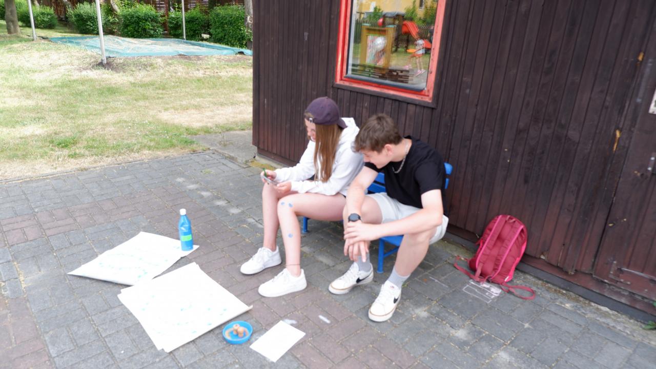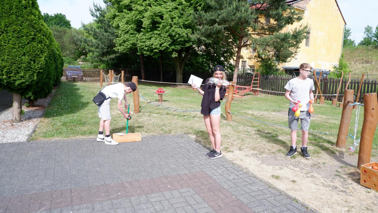 Žáci 8.B pomáhali organizovat oslavu Dne dětí v Mateřské škole v Hostomicích.