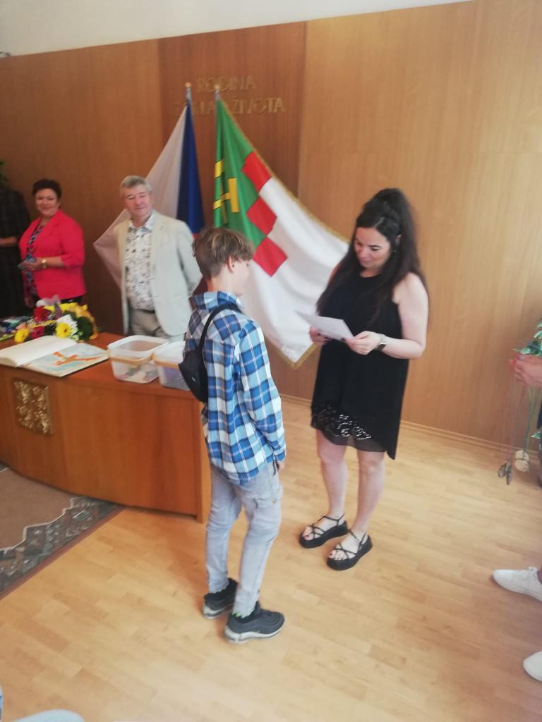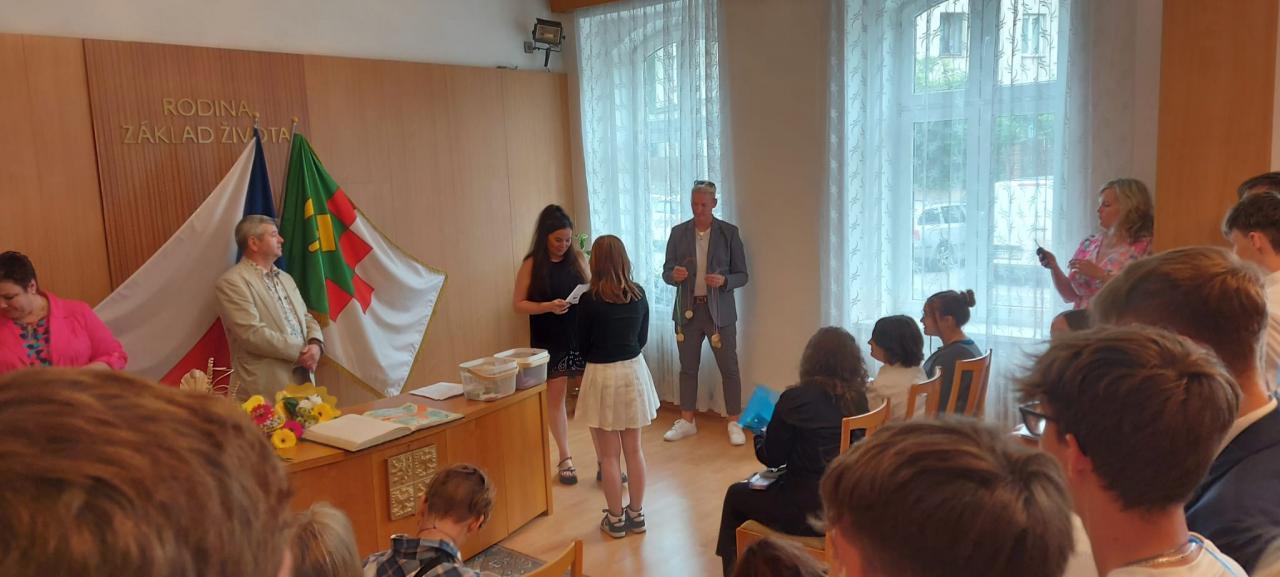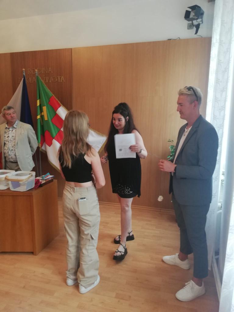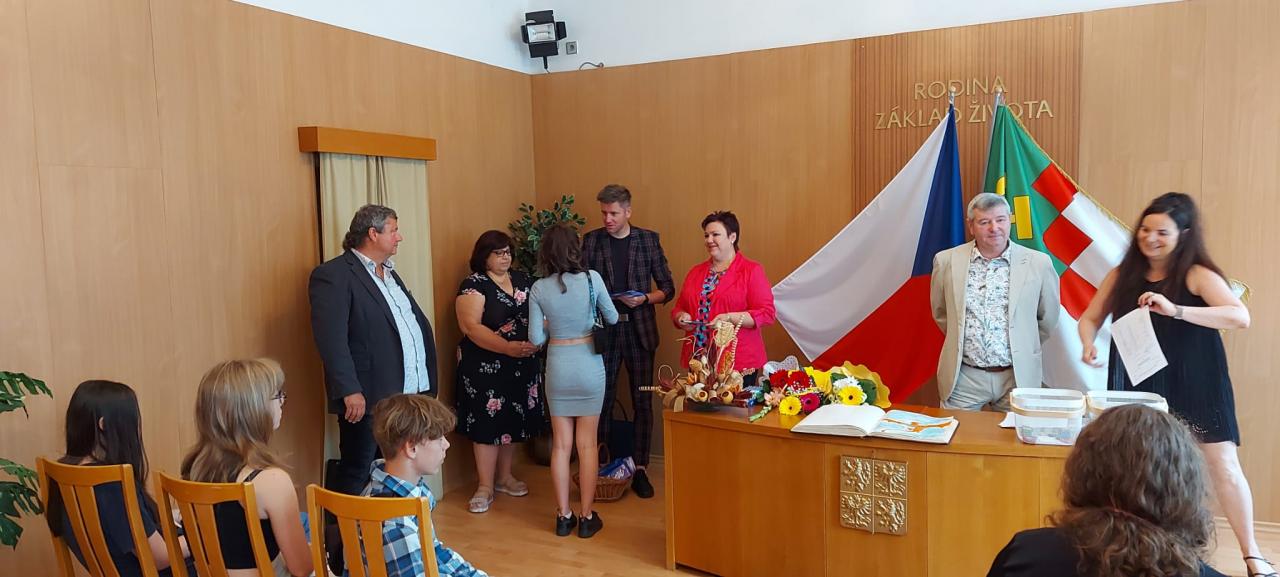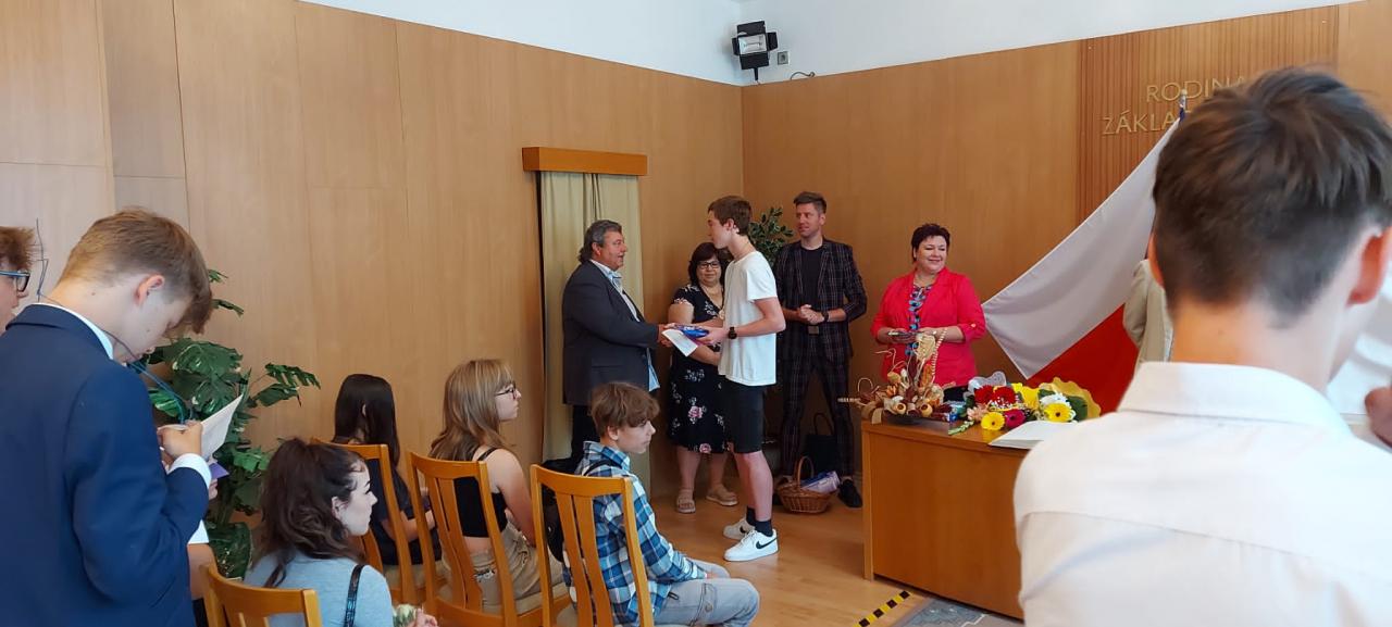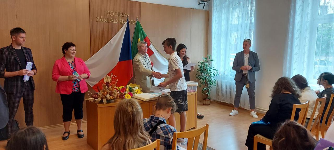 Slavnostní rozdávání vysvědčení žákům 9.ročníku proběhlo na Úřadě městyse Hostomice. Závěrečné vysvědčení a malé dárečky žákům předala paní třídní učitelka, která jim společně s panem starostou Hostomic, Ledvic, paní starostky a místostarosty Světce a paní starostky Ohníče popřála hodně úspěchů v následujícím studiu.