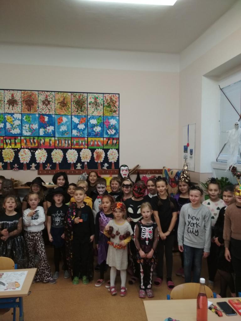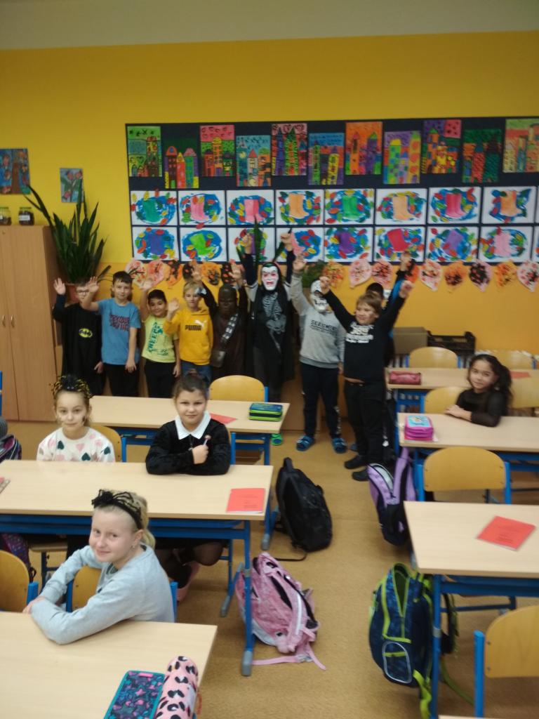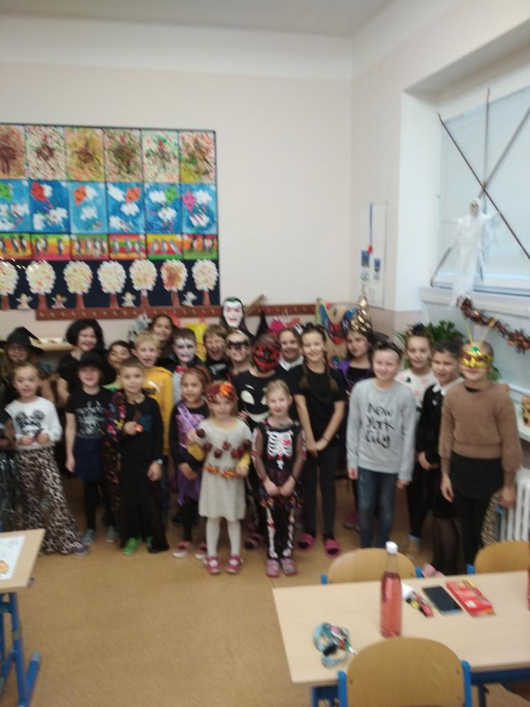 Dnes jsme byli ve škole převlečeni do strašidelných kostýmů. Užili jsme si spoustu legrace. Dostali jsme sladkou koledu a měli pohodové dopoledne.