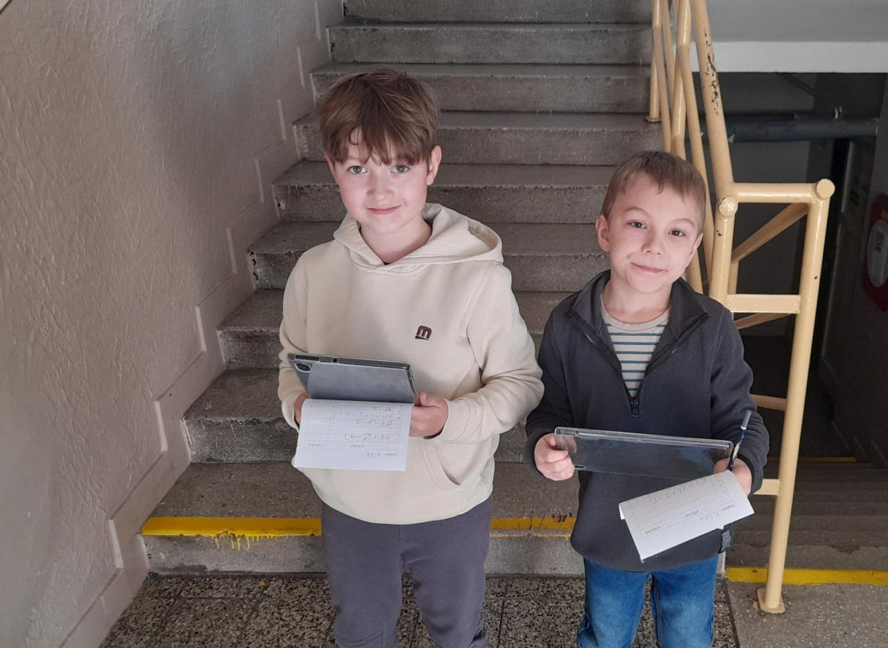 Děti se za pomoci tabletu naučily rozluštit QR kód, přes který hledaly příklady a následně je počítaly.
