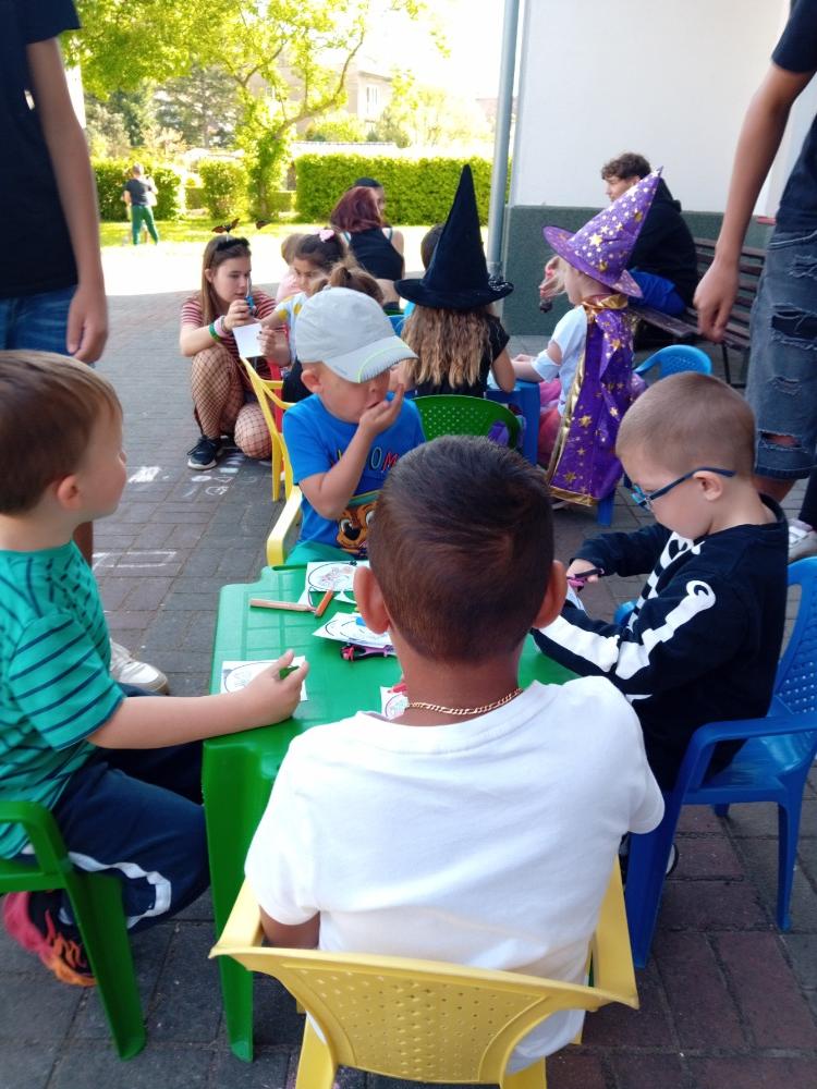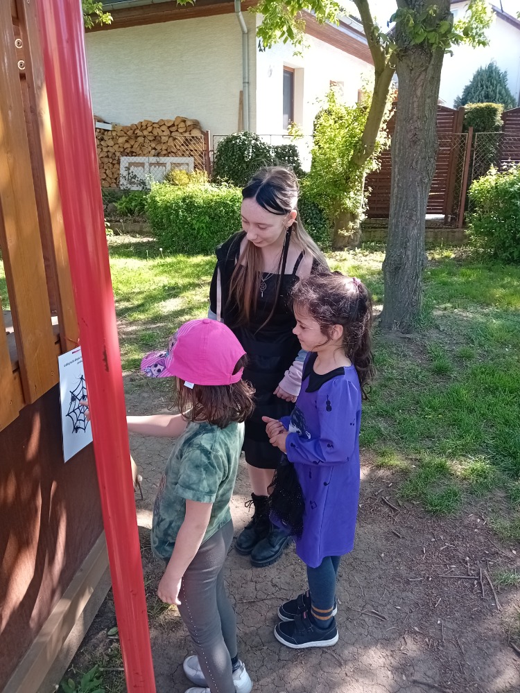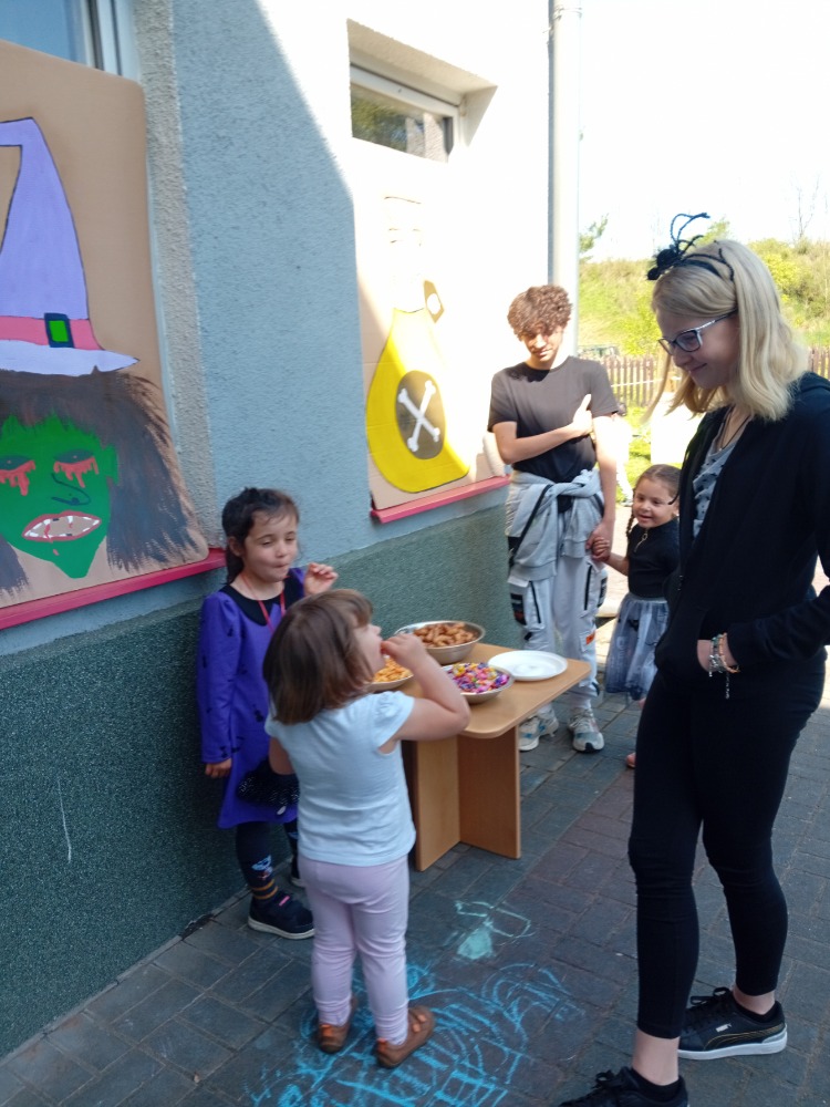 Žáci 8. třídy se vydali v kostýmech do Mateřské školy Hostomice, kde provázeli své mladší kamarády a pomáhali jim při plnění úkolů, které se nesly v "čarodějnickém" duchu. V rámci hodin výtvarné výchovy vytvořili krásné plakáty. Dopolední atmosféra byla úžasná, celou akci si všichni moc užili.