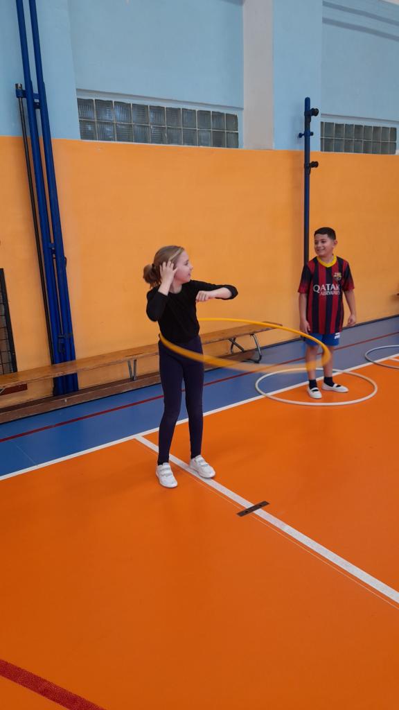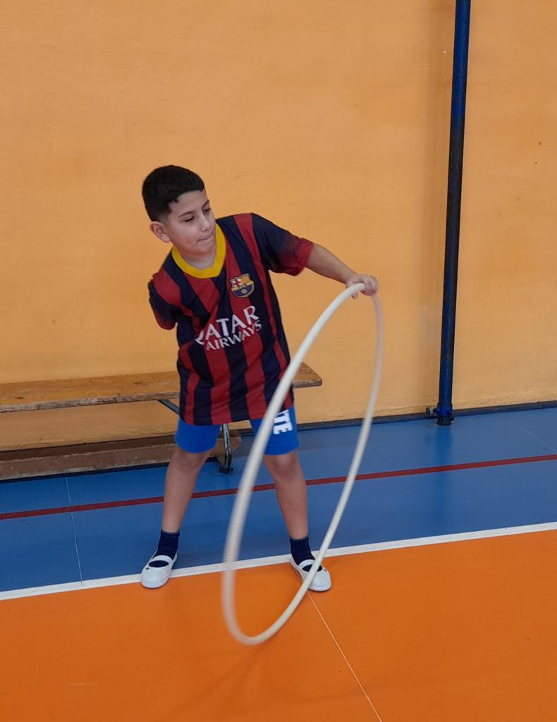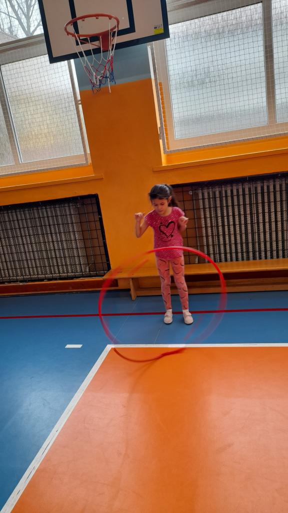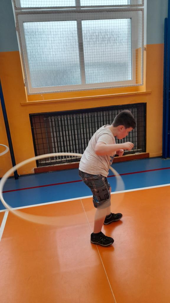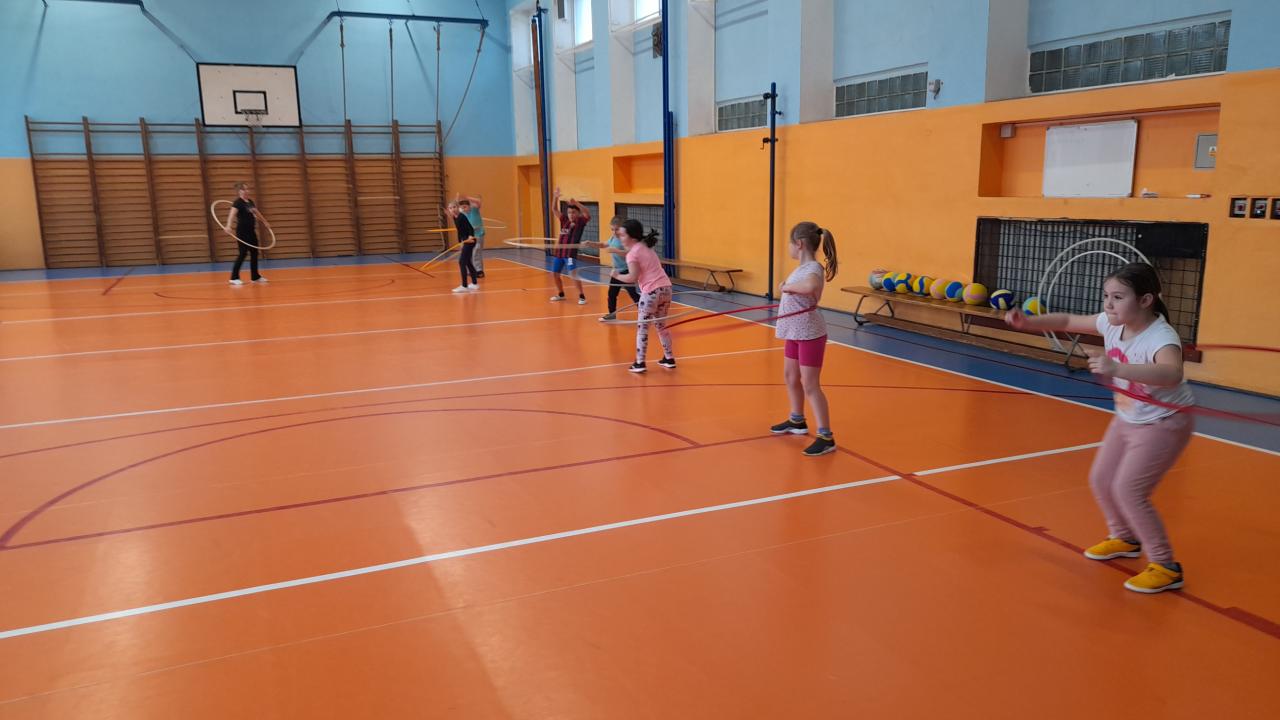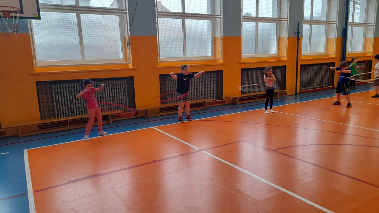 V hodinách Tv si žáci 2.A vyzkoušeli nové hry a cvičení s obručí.