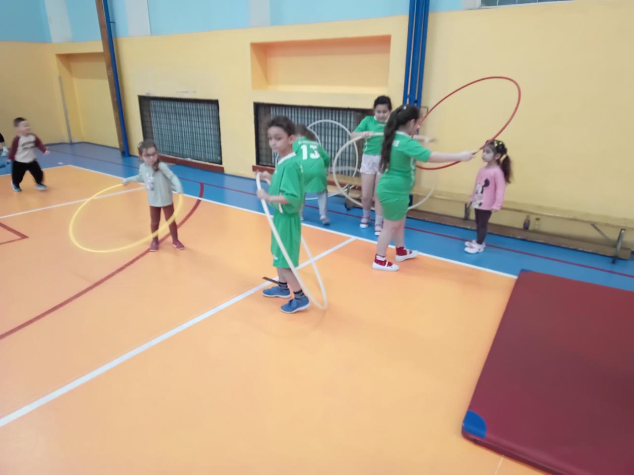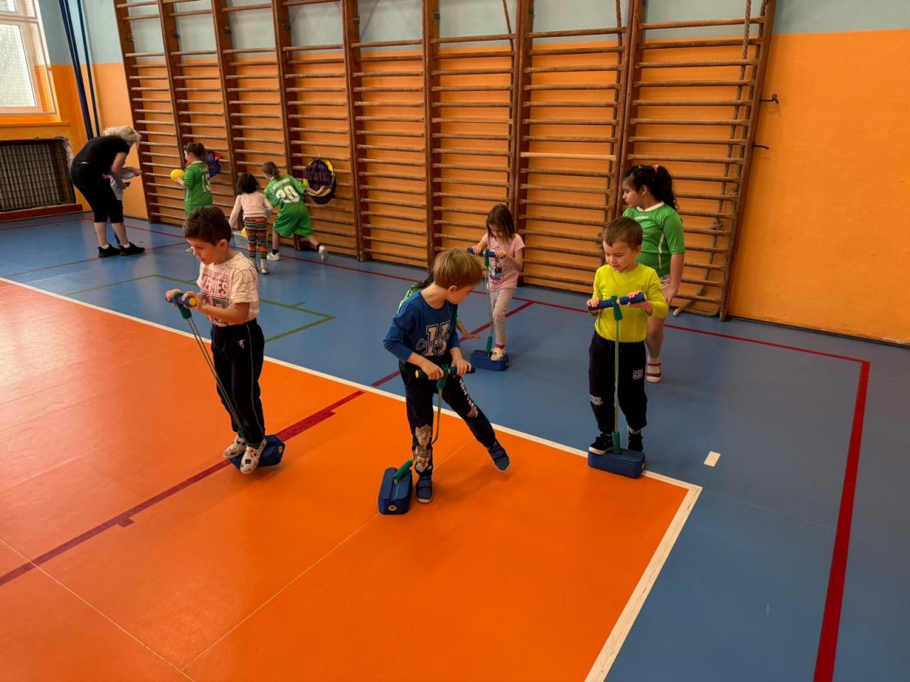 Akce pro děti mateřské školy z Hostomic a Chotějovic v tělocvičně základní školy.