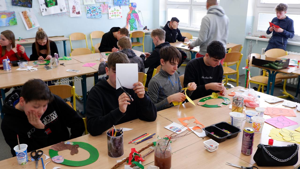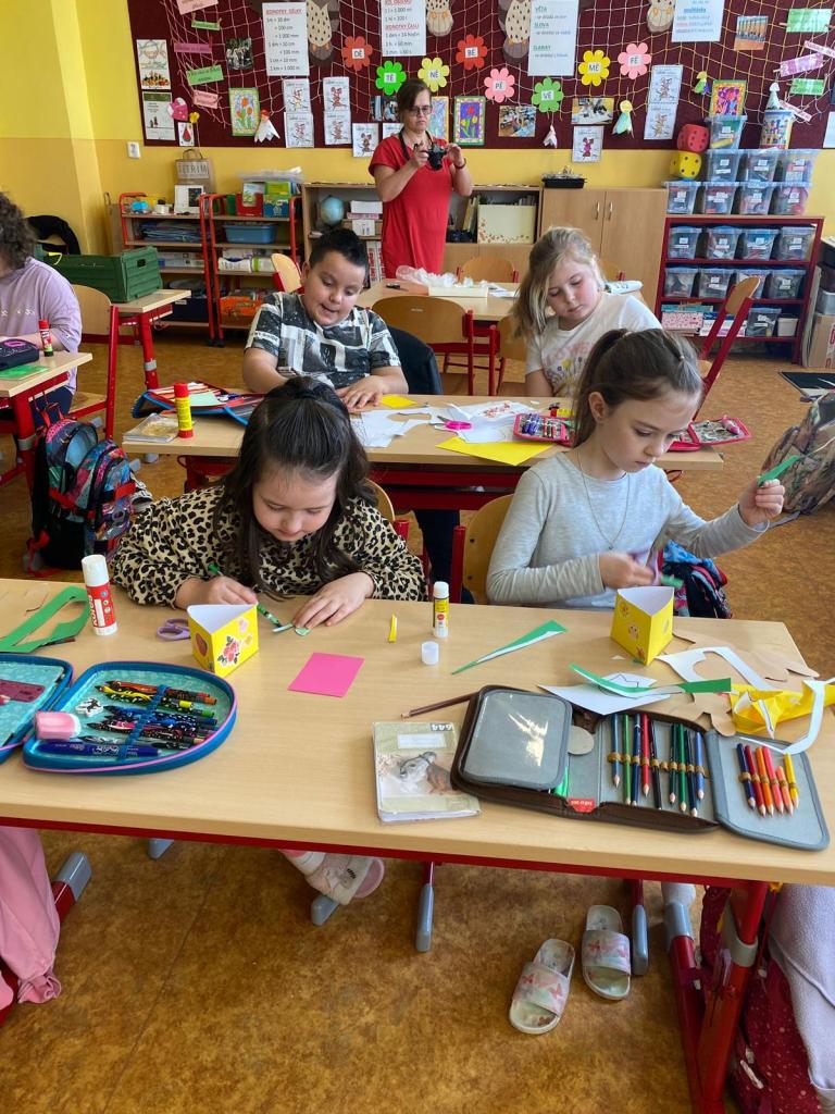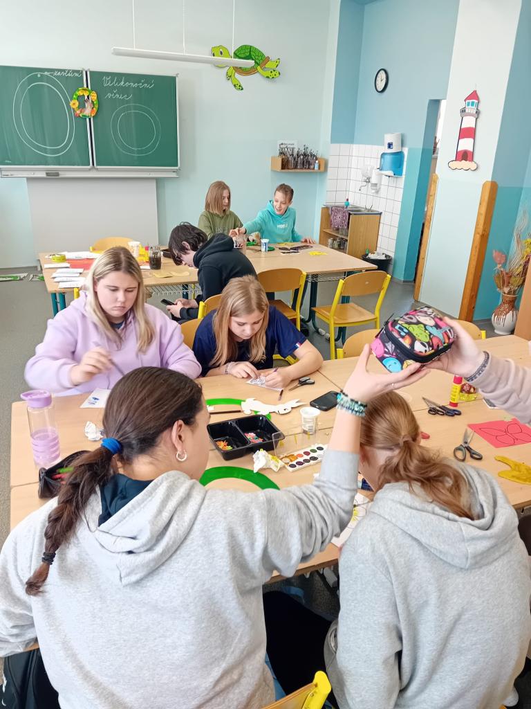 V úterý 26. března 2024, v čase před velikonočními svátky, proběhly ve škole velikonoční dílničky. Žáci všech ročníků vyráběli velikonoční výzdobu ( malovali kraslice, vyráběli tradiční výzdobu či přáníčka, pletli pomlázky...), plnili úkoly s velikonoční tématikou, zahráli si únikovou hru, seznámili se s oslavami v okolních zemí. Celá výuka dne, přizpůsobená věku žáků, byla netradiční a jejím výsledkem byly krásné výrobky či získání nových poznatků.