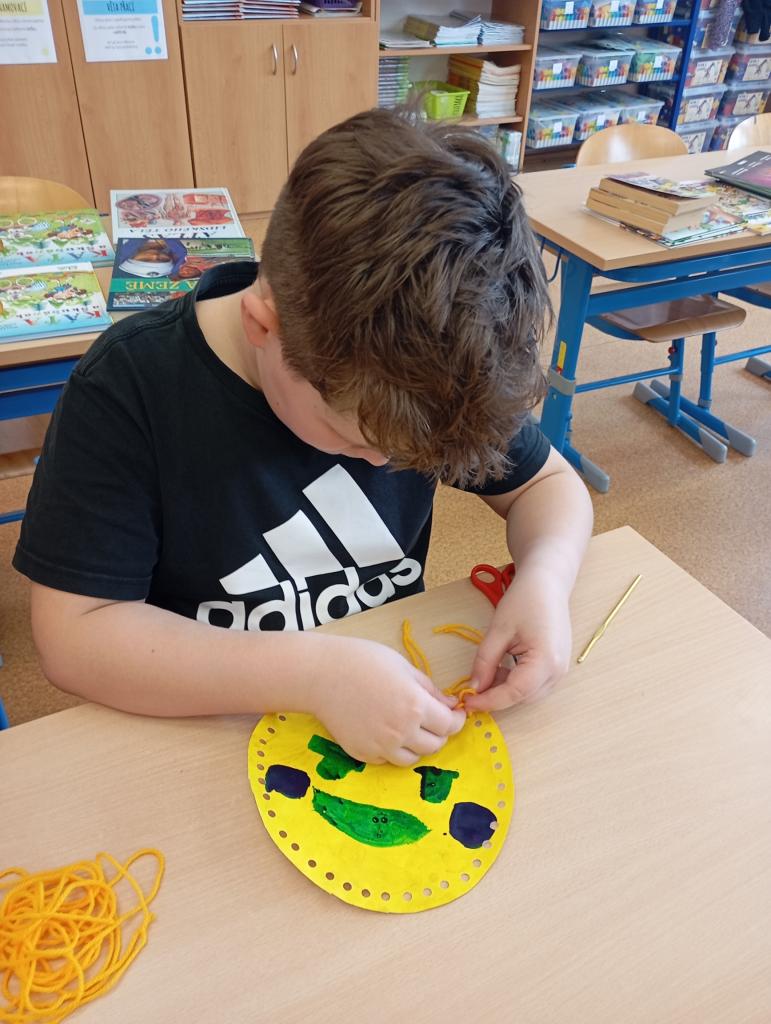 V rámci hodiny praktických činností jsme si vyzkoušeli práci s vlnou a vytvořili krásná sluníčka. Žáci si osvojili základní techniky, jako je omotávání, provlékání a háčkování, a rozvíjeli svou kreativitu i jemnou motoriku.