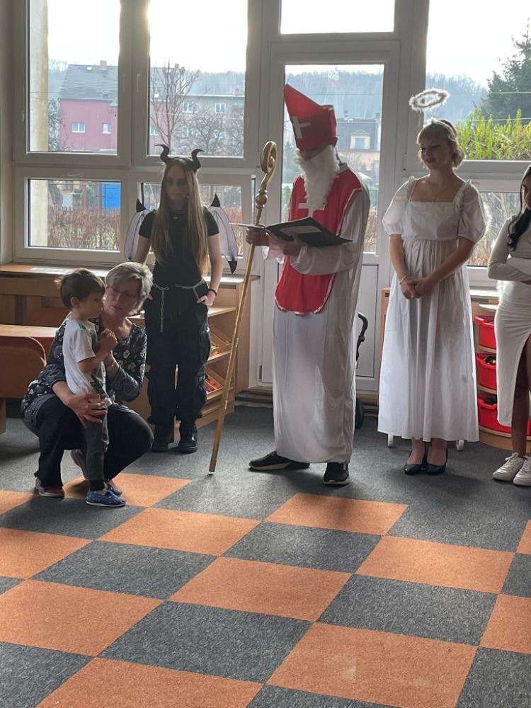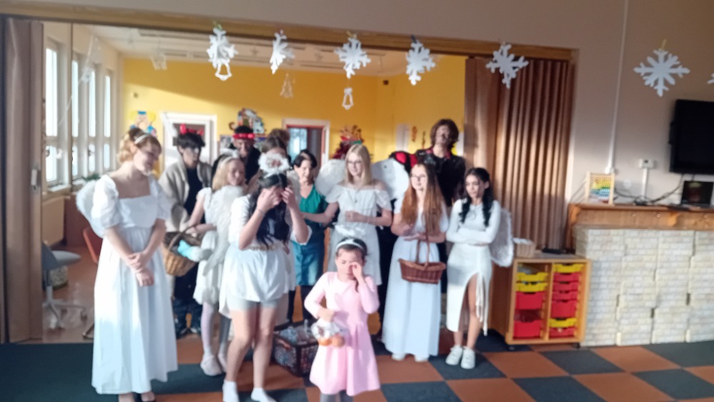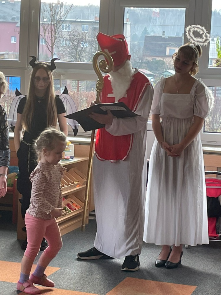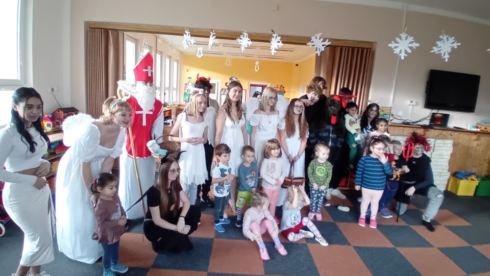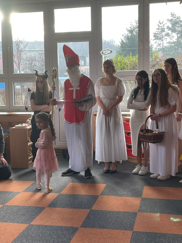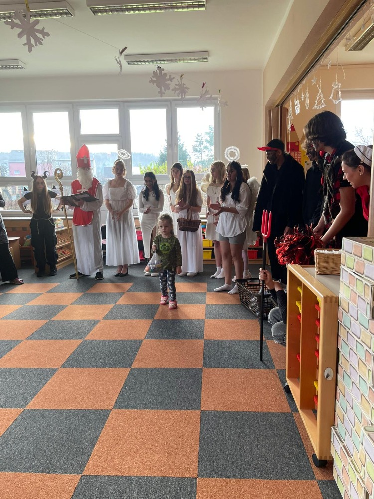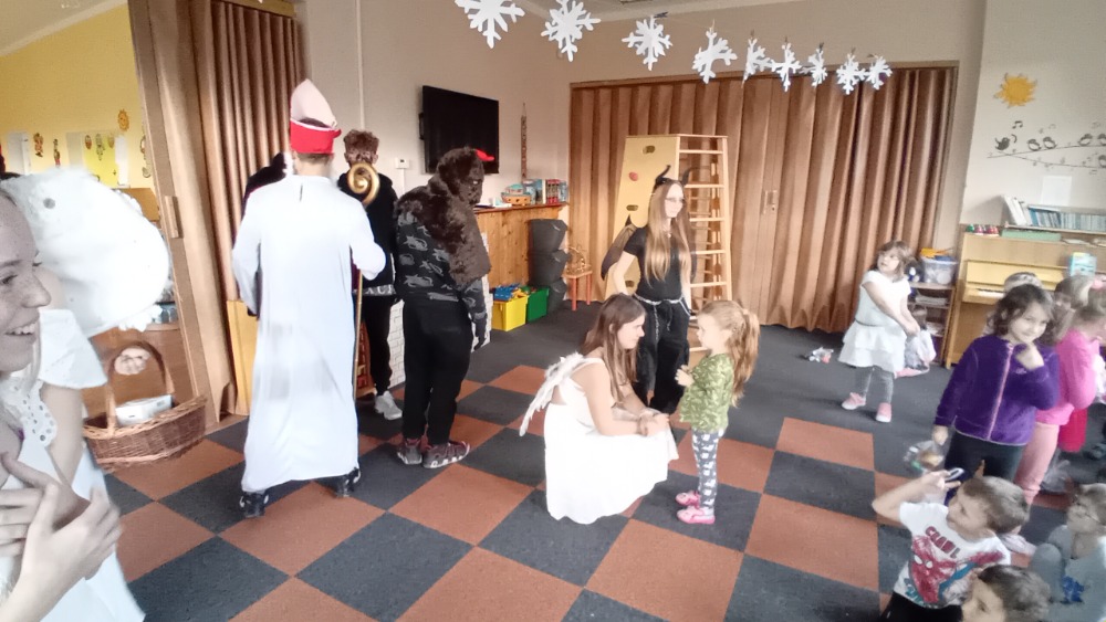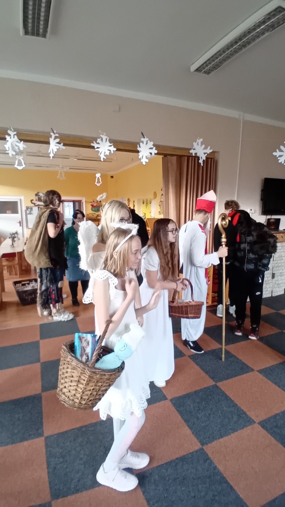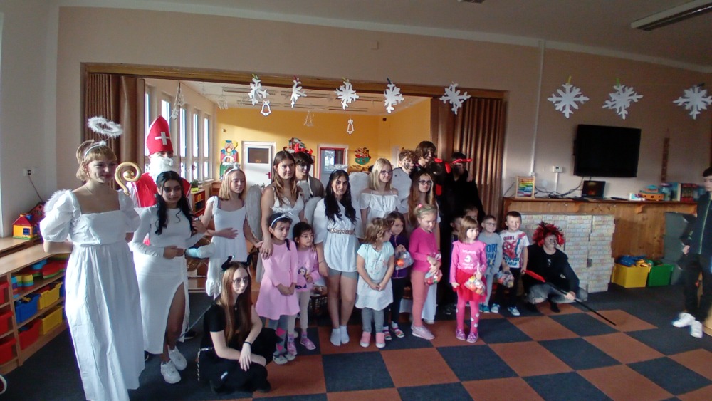 Žáci 9.A se vypravili 4. prosince do "mateřinky", kde v kostýmech čertovských, andělských a v roli Mikuláše připravili pro děti nadílku.