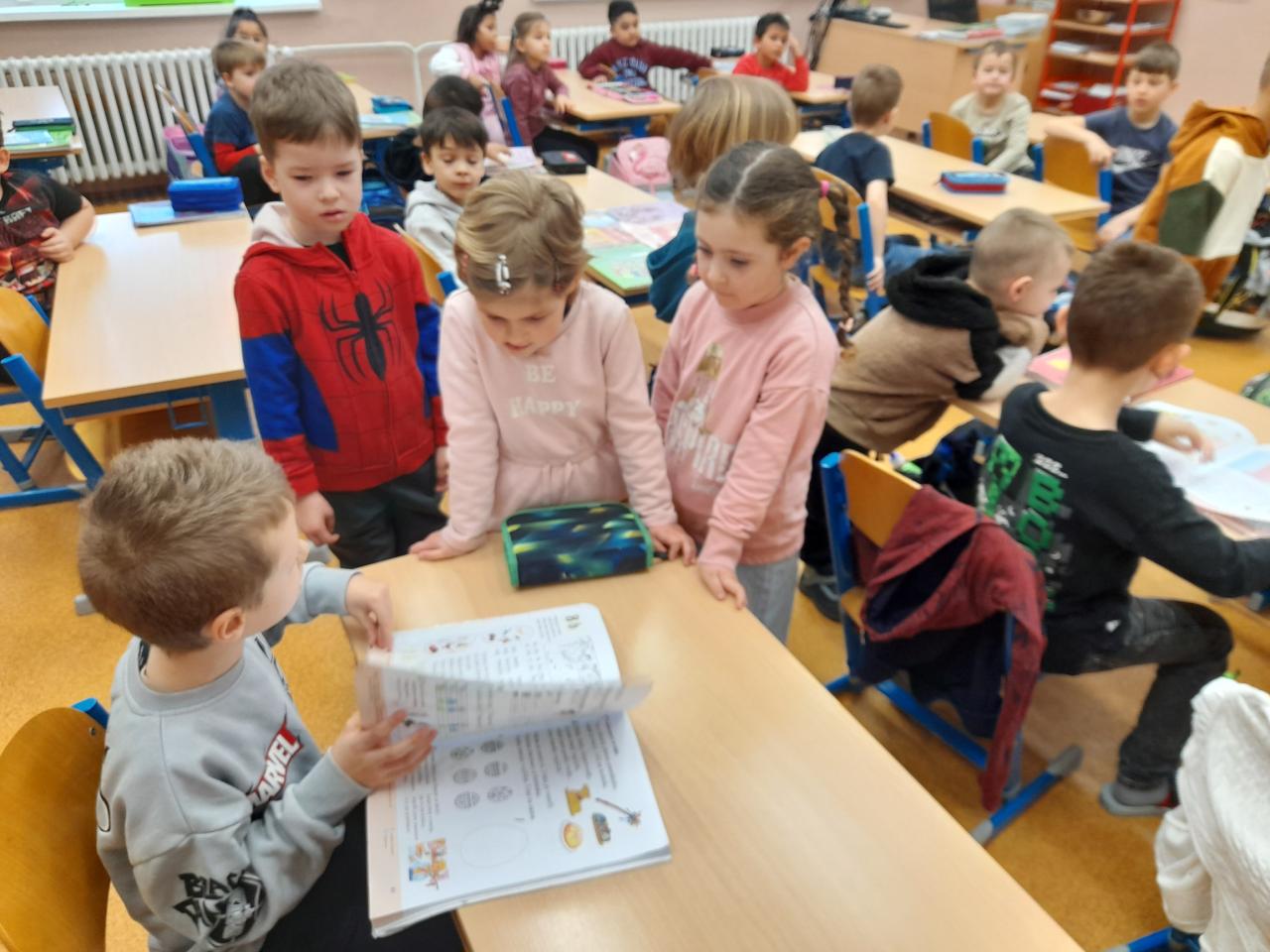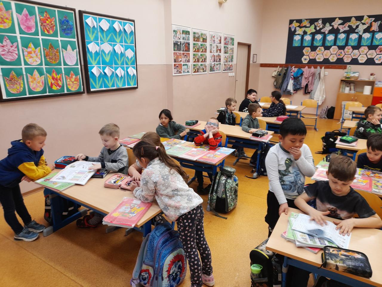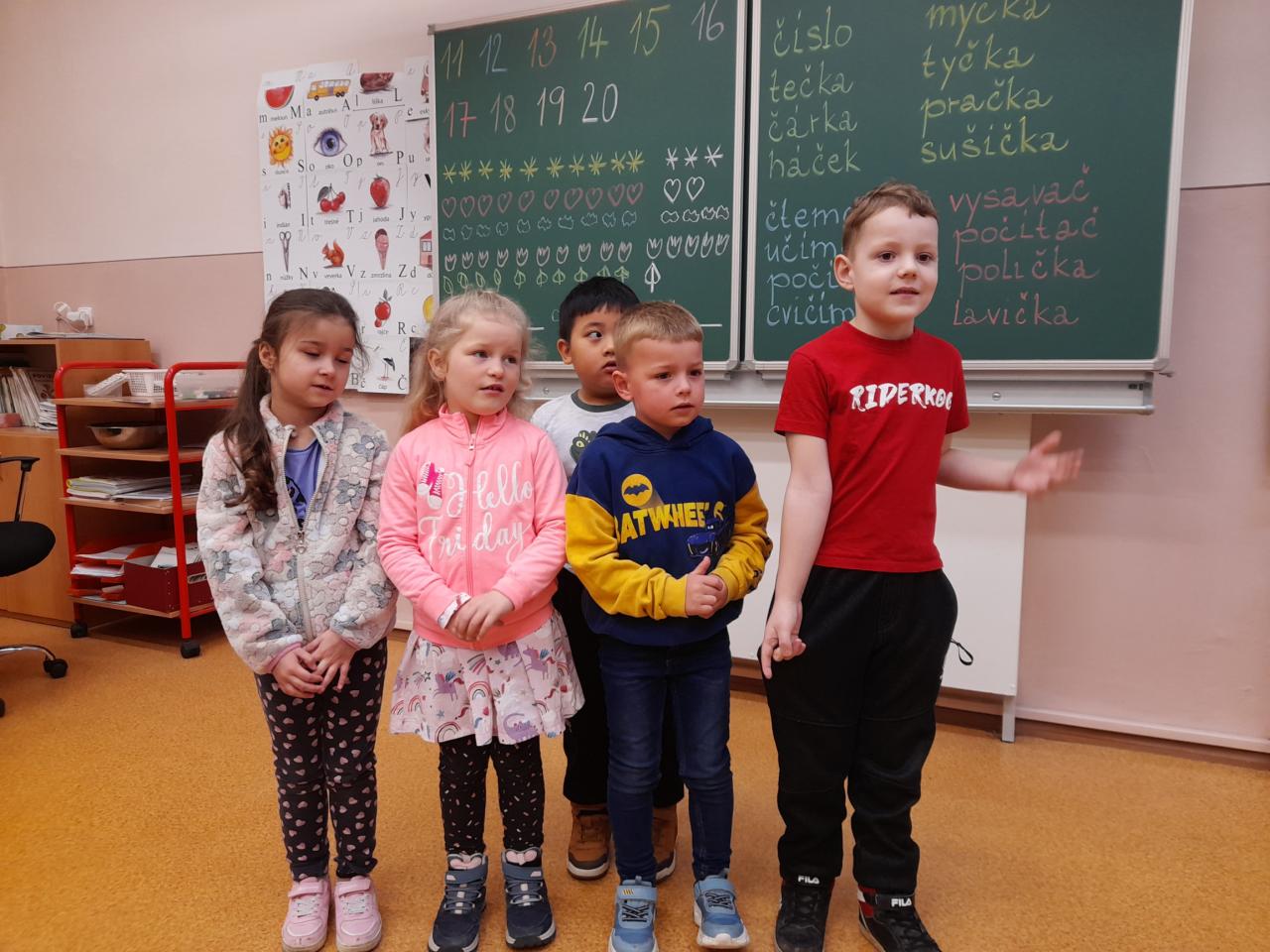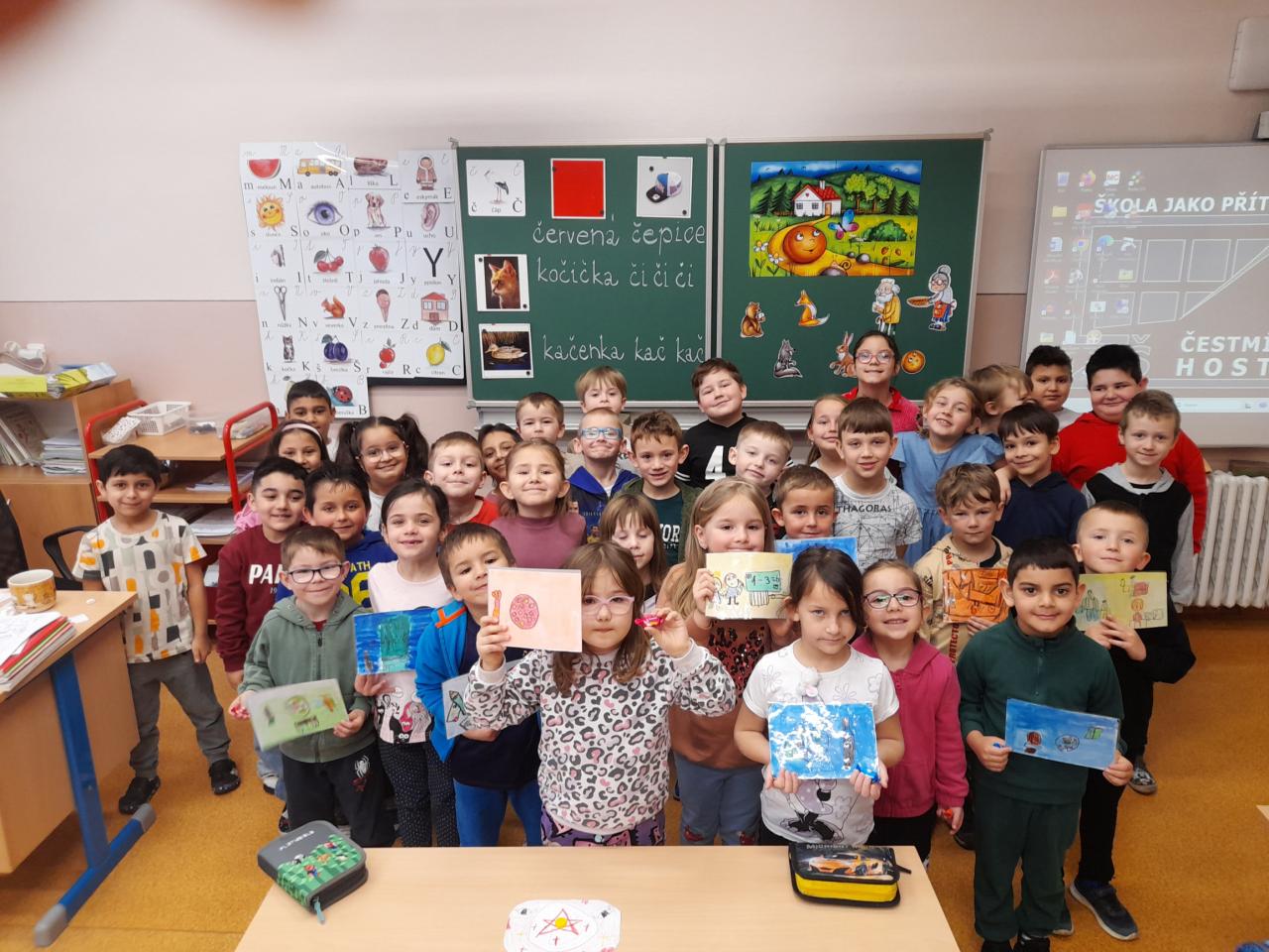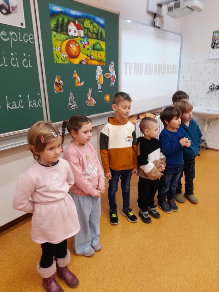 V březnu nás, prvňáčky, navštívily děti z mateřských škol Hostomice, Ledvice a Ohníč. Ukázali jsme jim, co všechno jsme se už ve škole naučili.