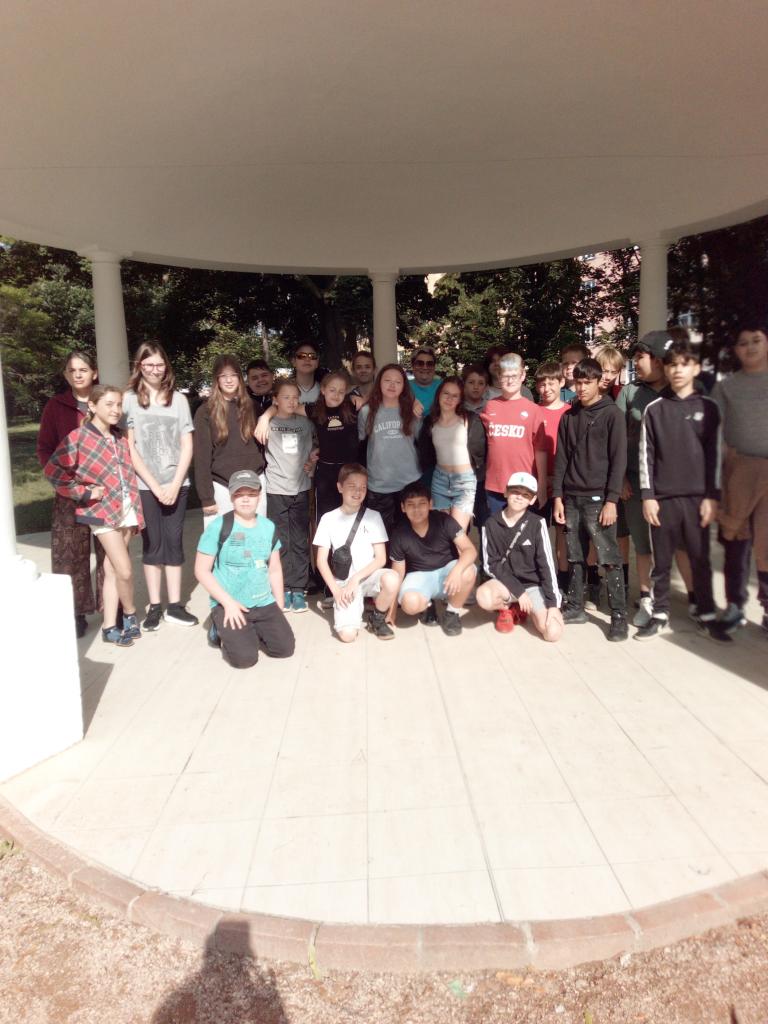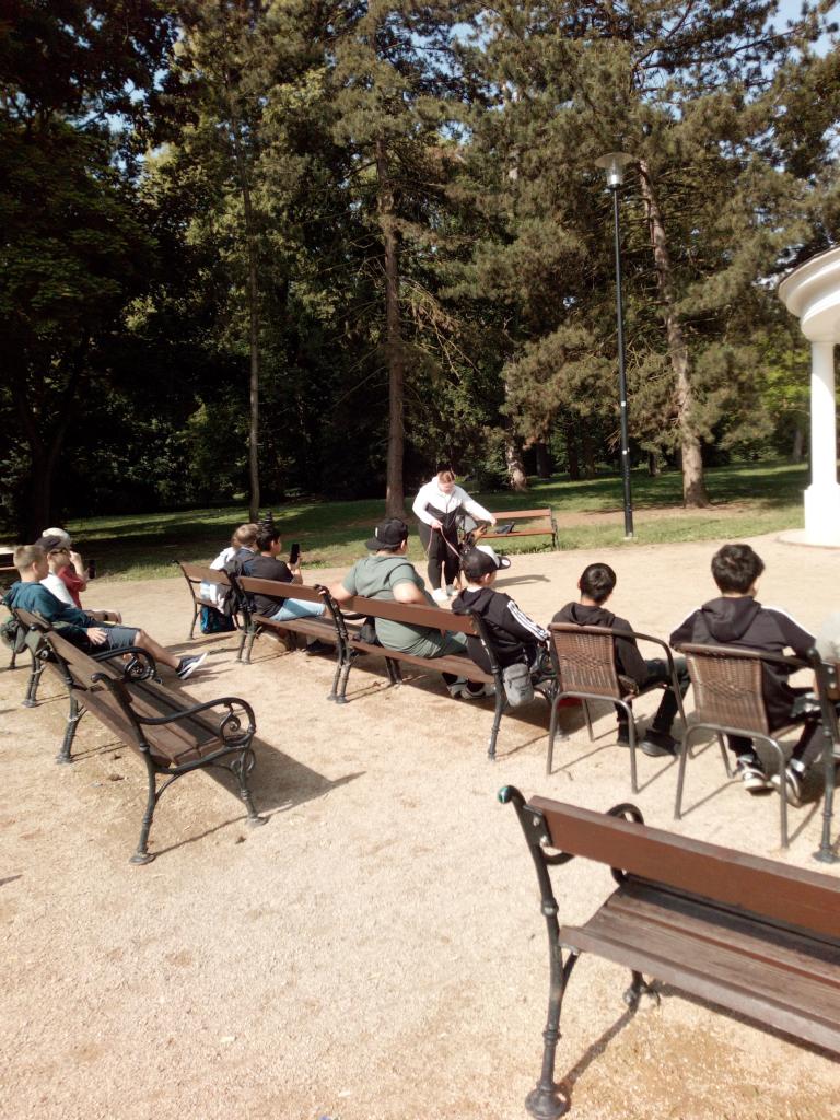 Exkurze proběhla v prostorách Zámecké zahrady v atriu Zahradního domu. Zde na pódiu některé dívky zatančily, jiní předvedli své komunikativní dovednosti. Pak nám p. asistentka ukázala práci se záchranářským psem. Následovala prohlídka Zámeckého náměstí s Morovým sloupem.