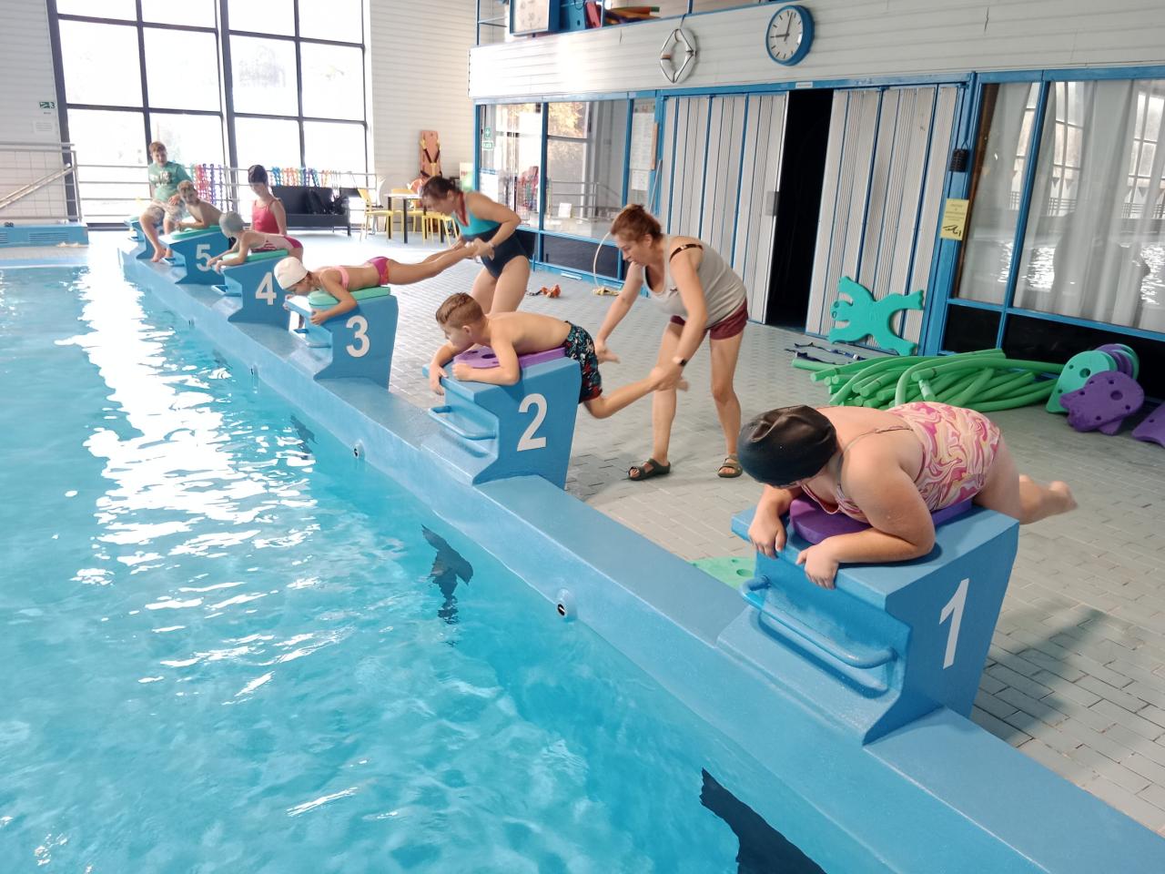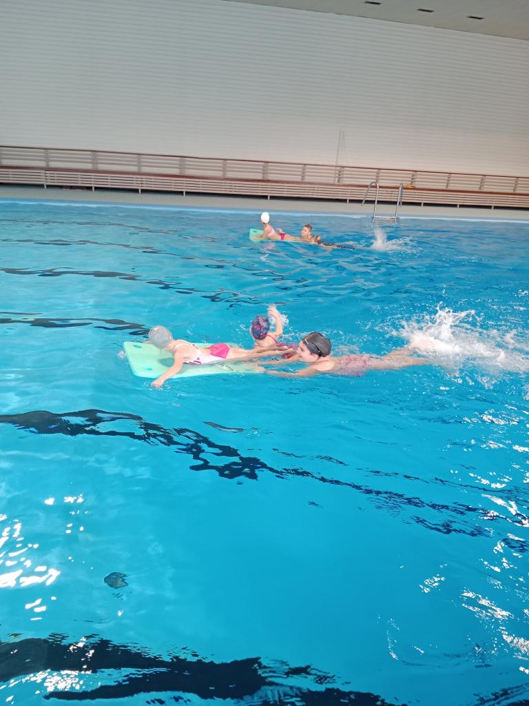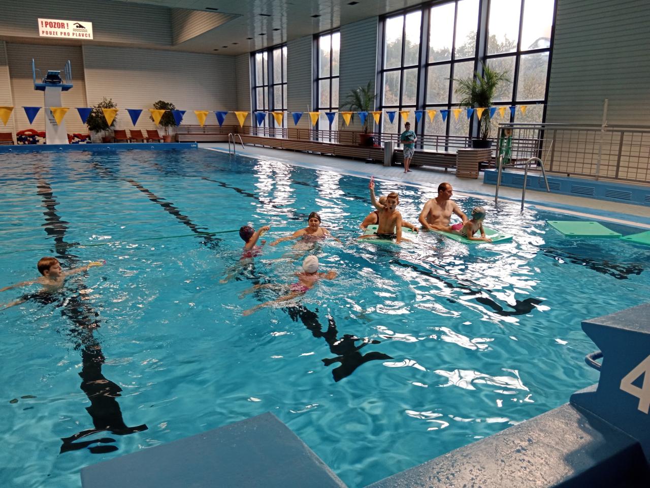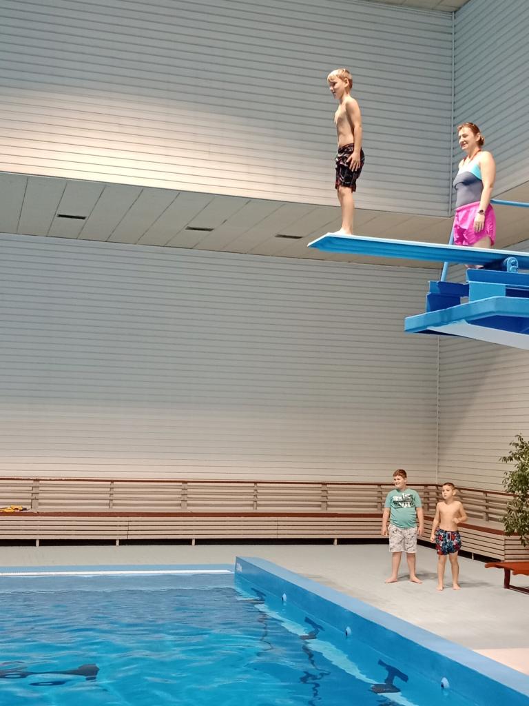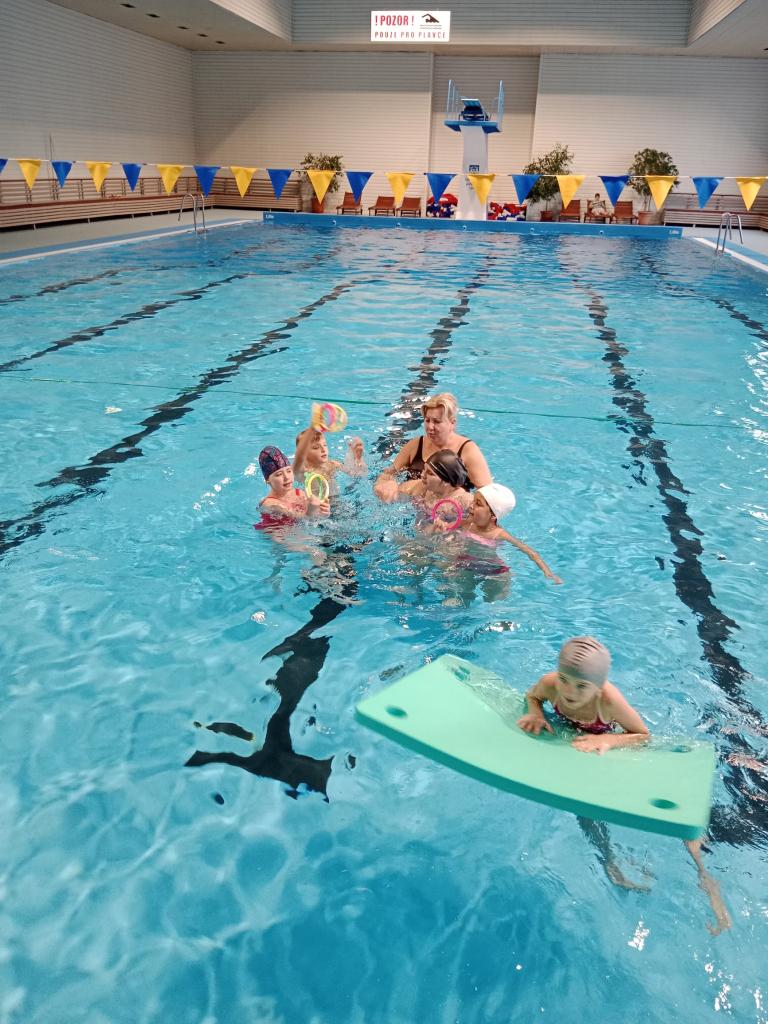 Dnešní lekce byla plná zábavy i soutěžení! Děti si užily soutěže ve vodě, lovily kroužky ze dna bazénu a pokračovaly v nácviku plaveckého stylu prsa. Na závěr si odvážnější vyzkoušely i skok z věže. Všichni si lekci skvěle užili a těší se na příště!