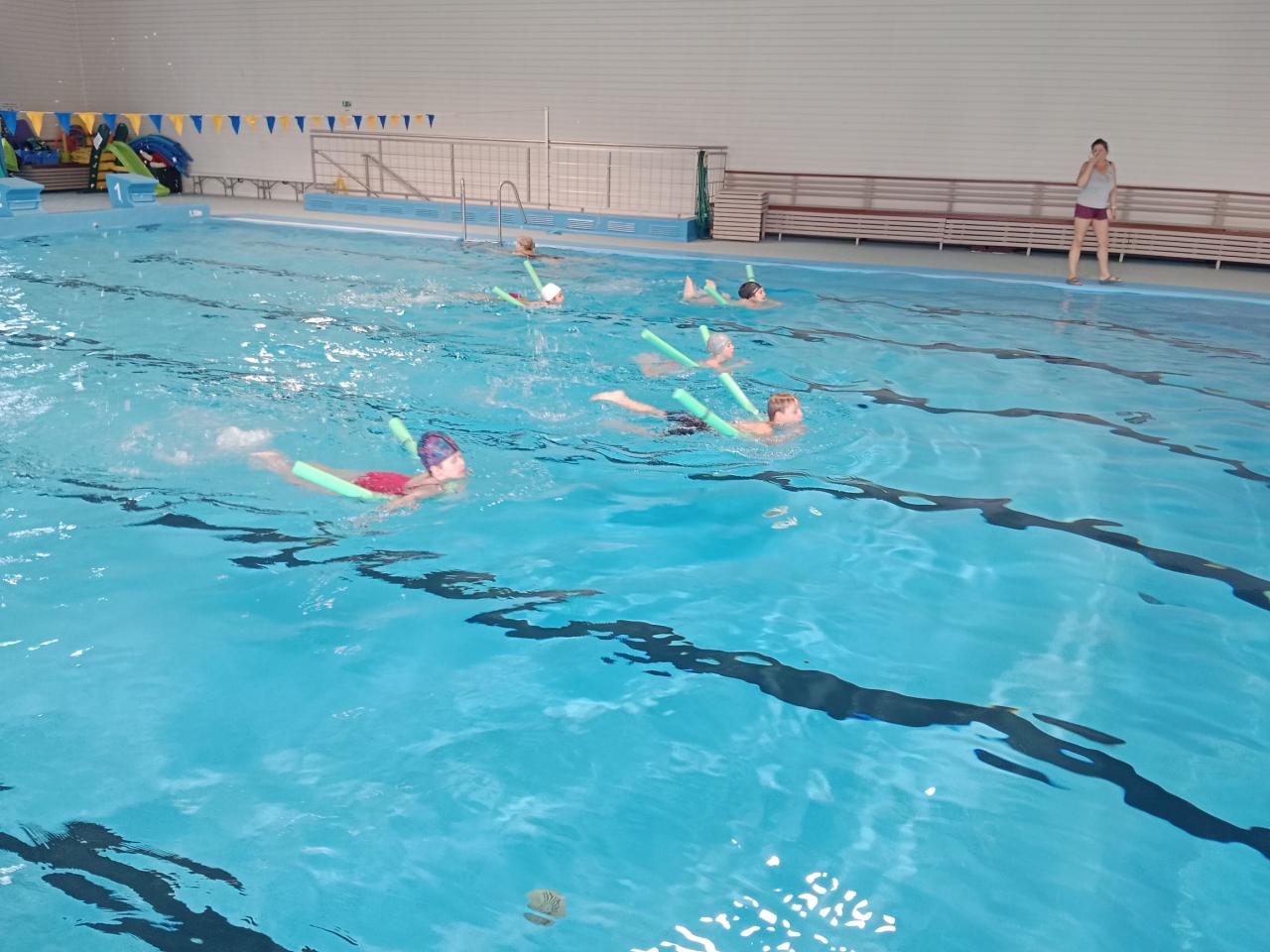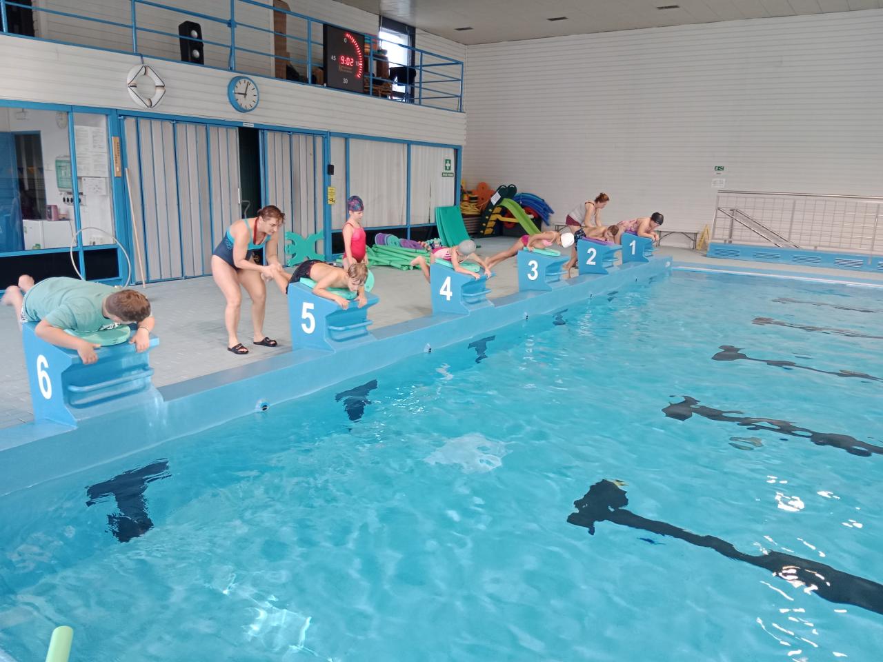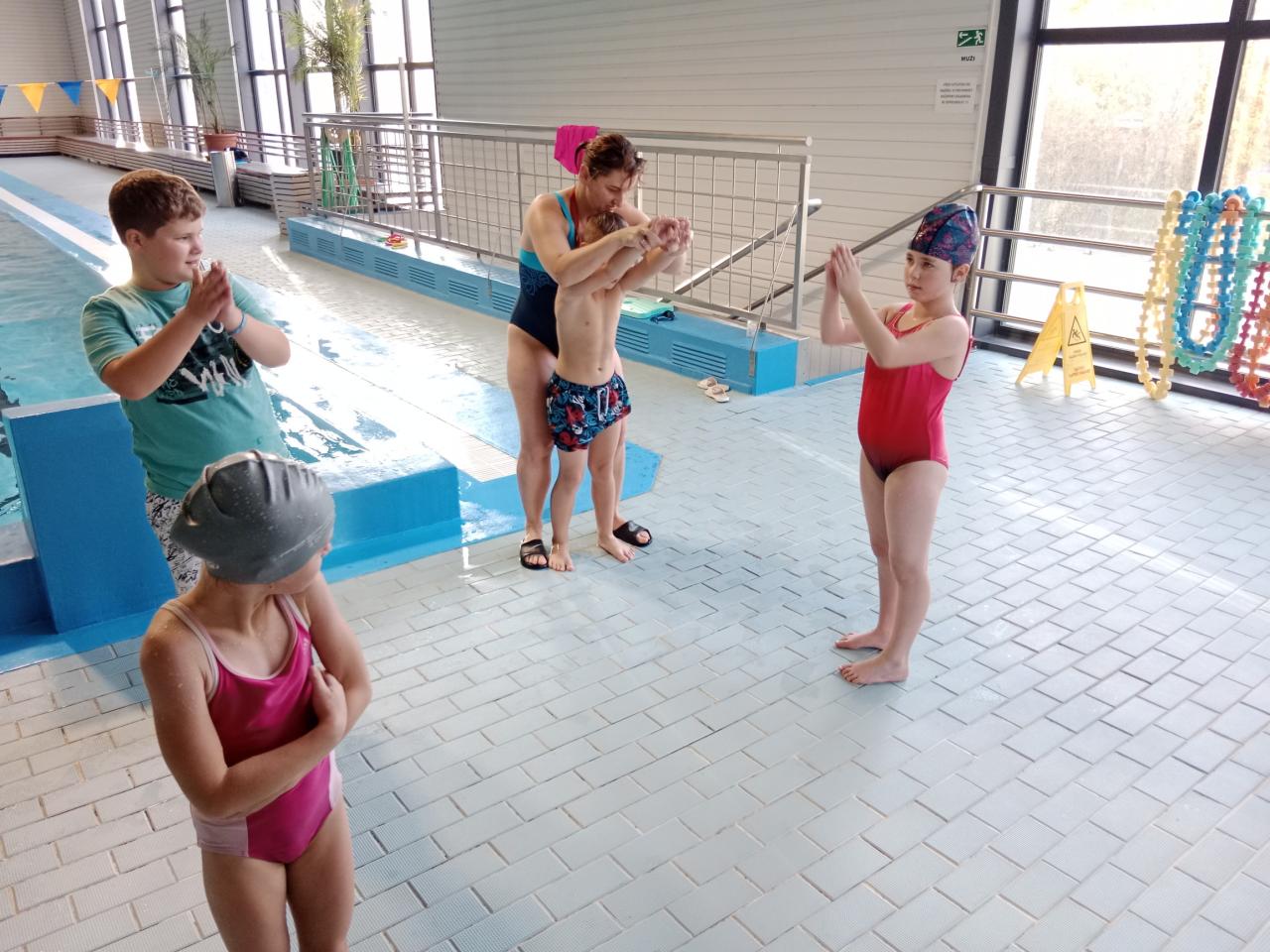 Dnešní lekce byla plná zábavy i soutěžení! Děti si užily soutěže ve vodě, lovily kroužky ze dna bazénu a pokračovaly v nácviku plaveckého stylu prsa. Na závěr si odvážnější vyzkoušely i skok z věže. Všichni si lekci skvěle užili a těší se na příště!