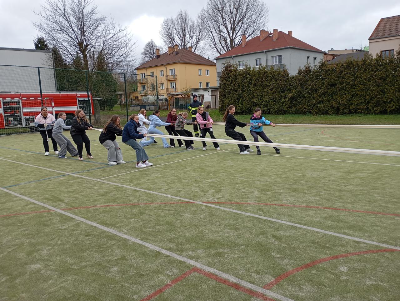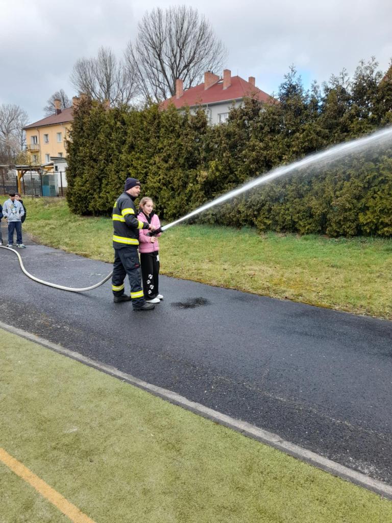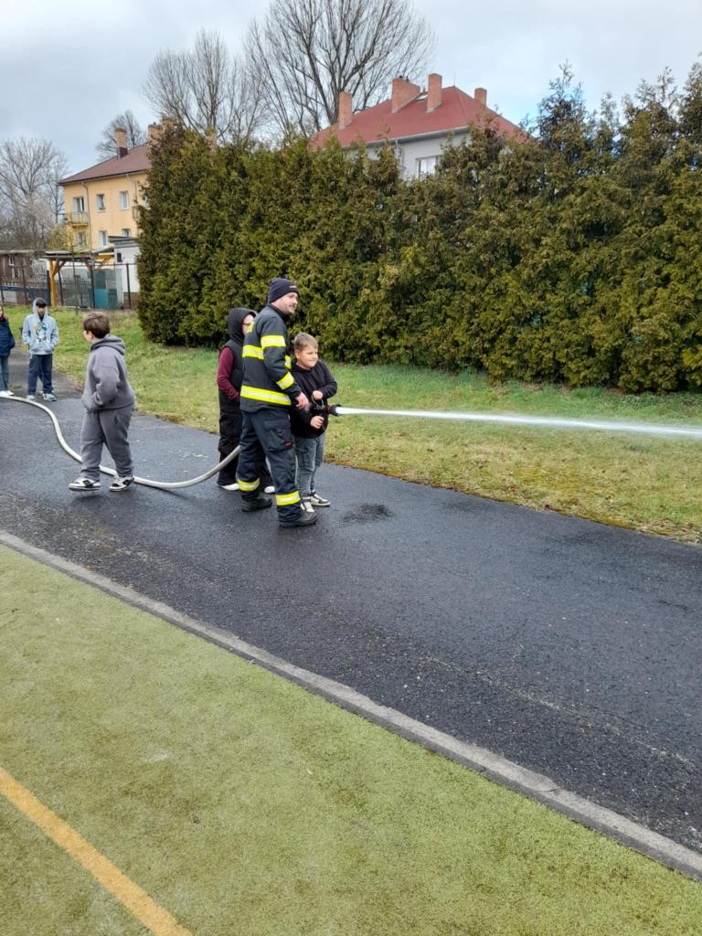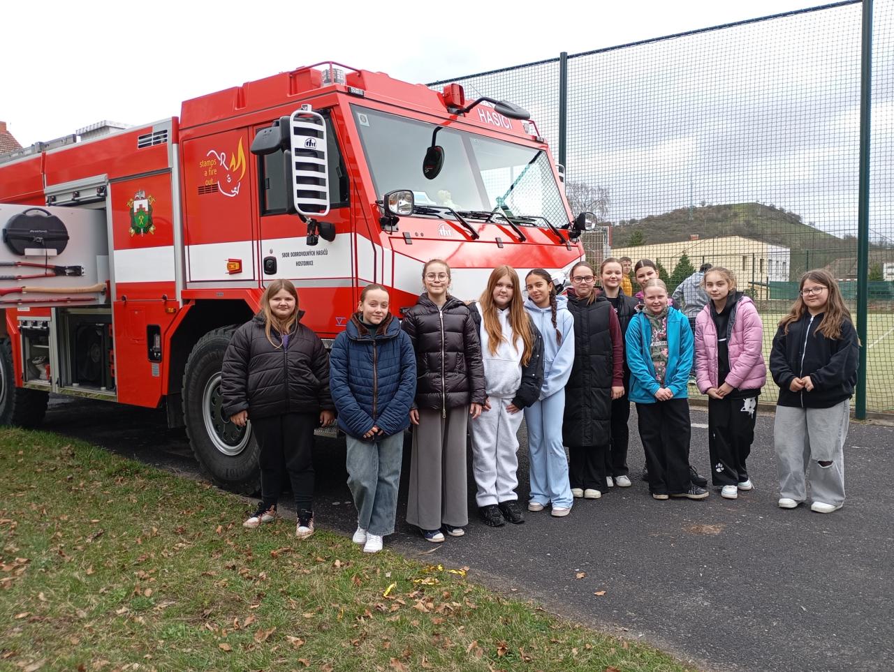 Žáci 5. ročníku se setkali s hasiči z Hostomic, kteří jim podrobněji představili svou práci. Prohlédli si hasičskou techniku, výstroj a zhlédli ukázky zásahů hasičů v terénu. Beseda byla pro žáky velmi přínosná a mnohé z nich zaujala možnost stát se mladým hasičem.