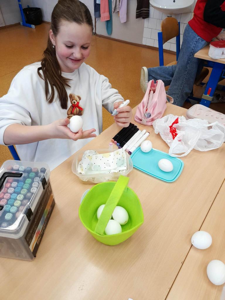 Pro pátou třídu jsme uspořádali velikonoční tvořivé dílny, kde si žáci rozvíjeli svou fantazii i zručnost. Věnovali se zdobení vajíček a tvorbě nápaditých jarních dekorací. Společně strávený čas byl plný pohody, kreativity a hezkých zážitků.