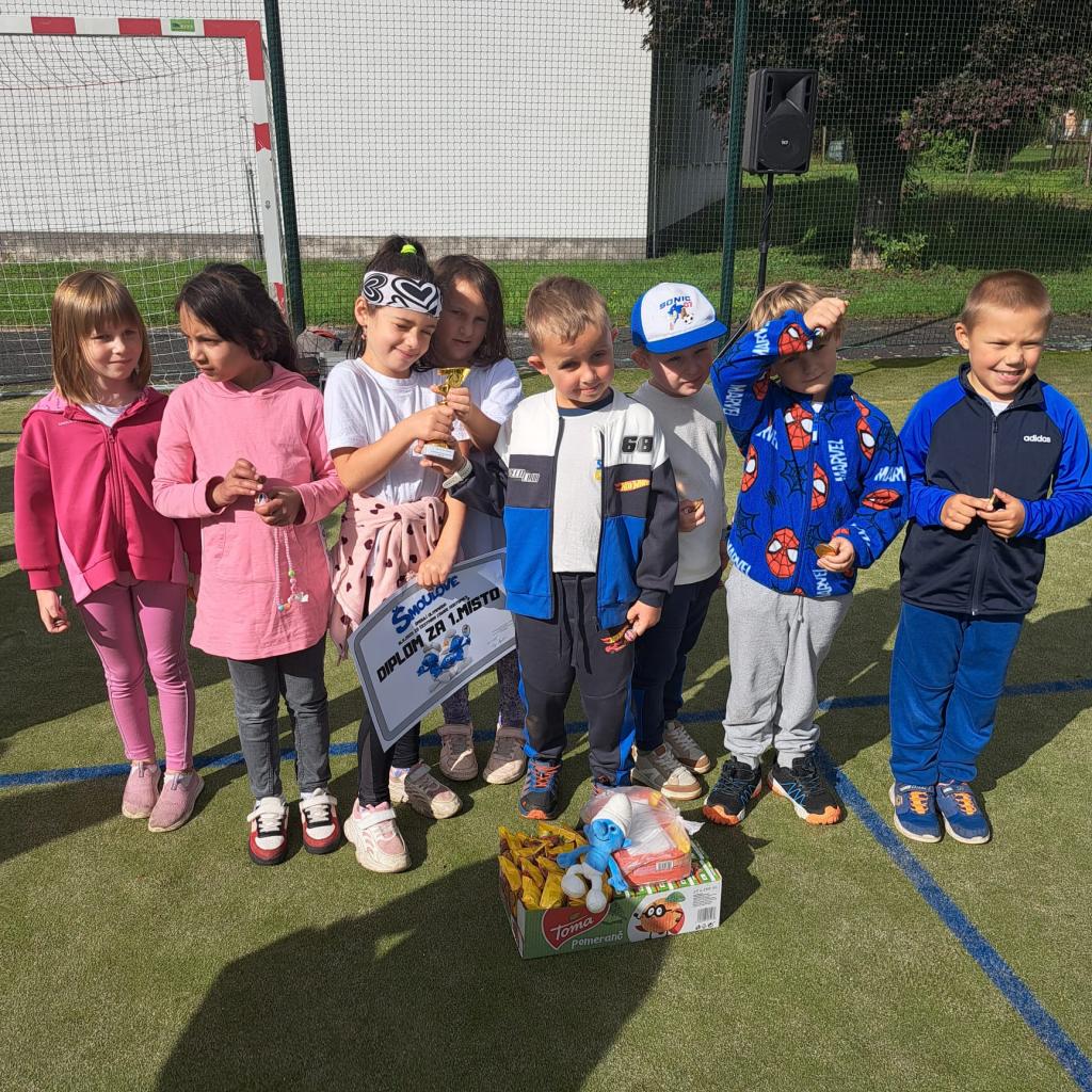 Dne 16.9. si žáci 1. třídy a děti ze školky společně užili veselou Šmoulí olympiádu. Plnili šmoulí výzvy, závodili s úsměvem na tváři a atmosféru zpříjemnili i opravdoví šmoulové, kteří malé sportovce povzbuzovali. Radost a sportovní nadšení nechyběly!