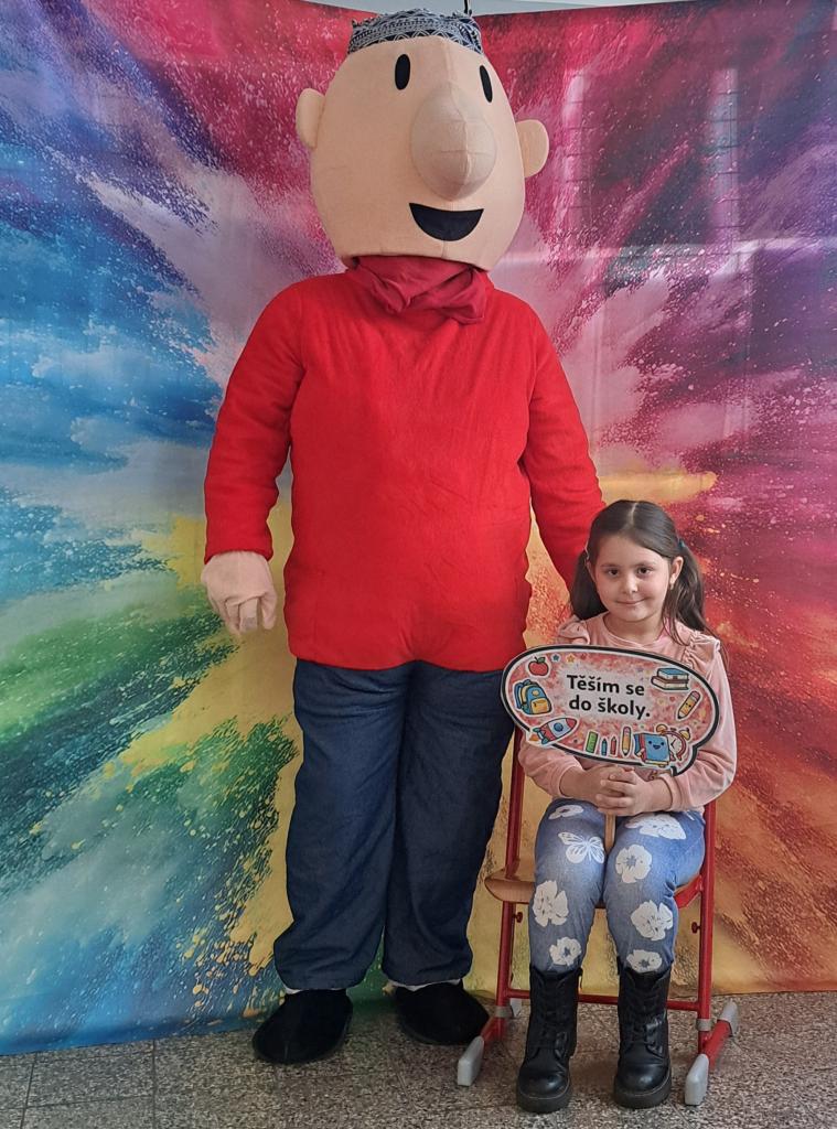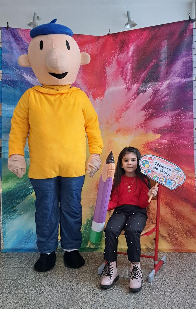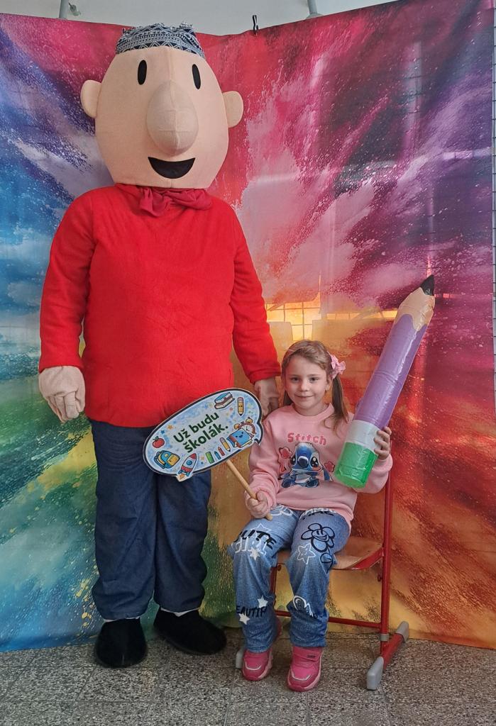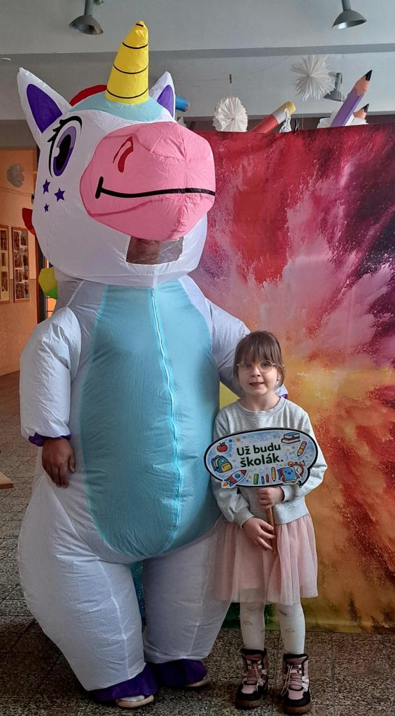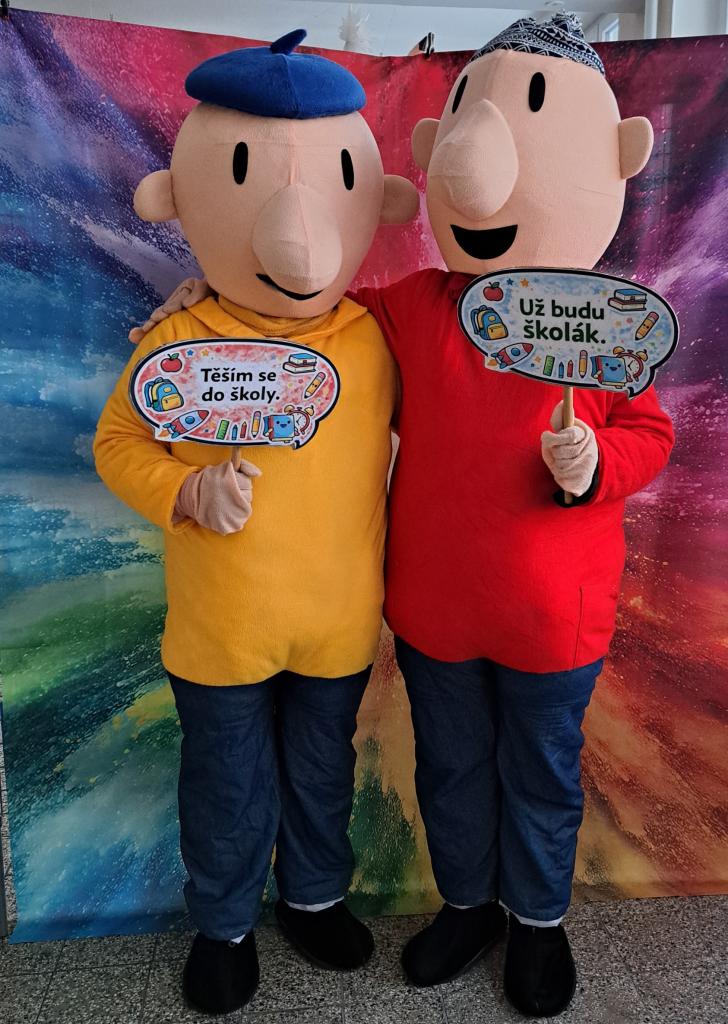 Budoucí prvňáčky i jejich rodiče přivítaly pohádkové postavy Pat a Mat spolu s jednorožcem, které přispěly k příjemné a přátelské atmosféře celého zápisu.