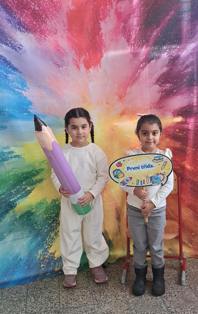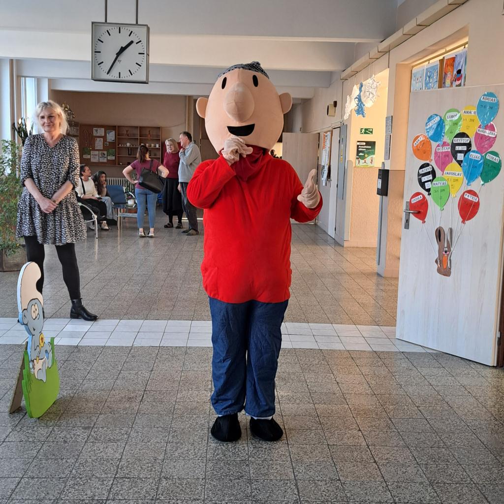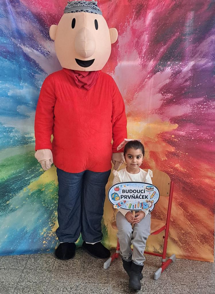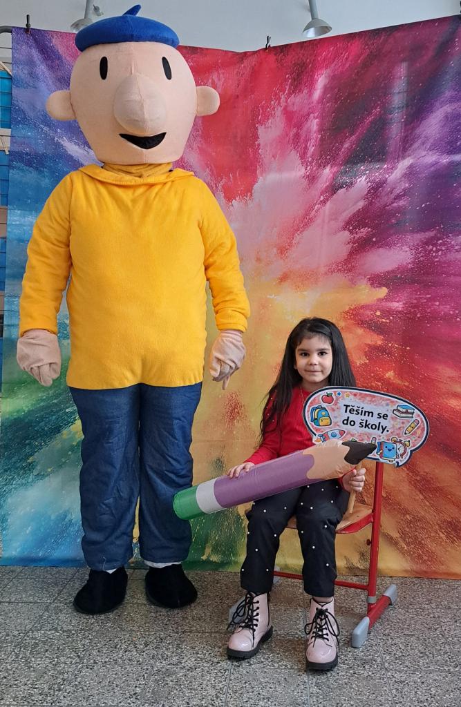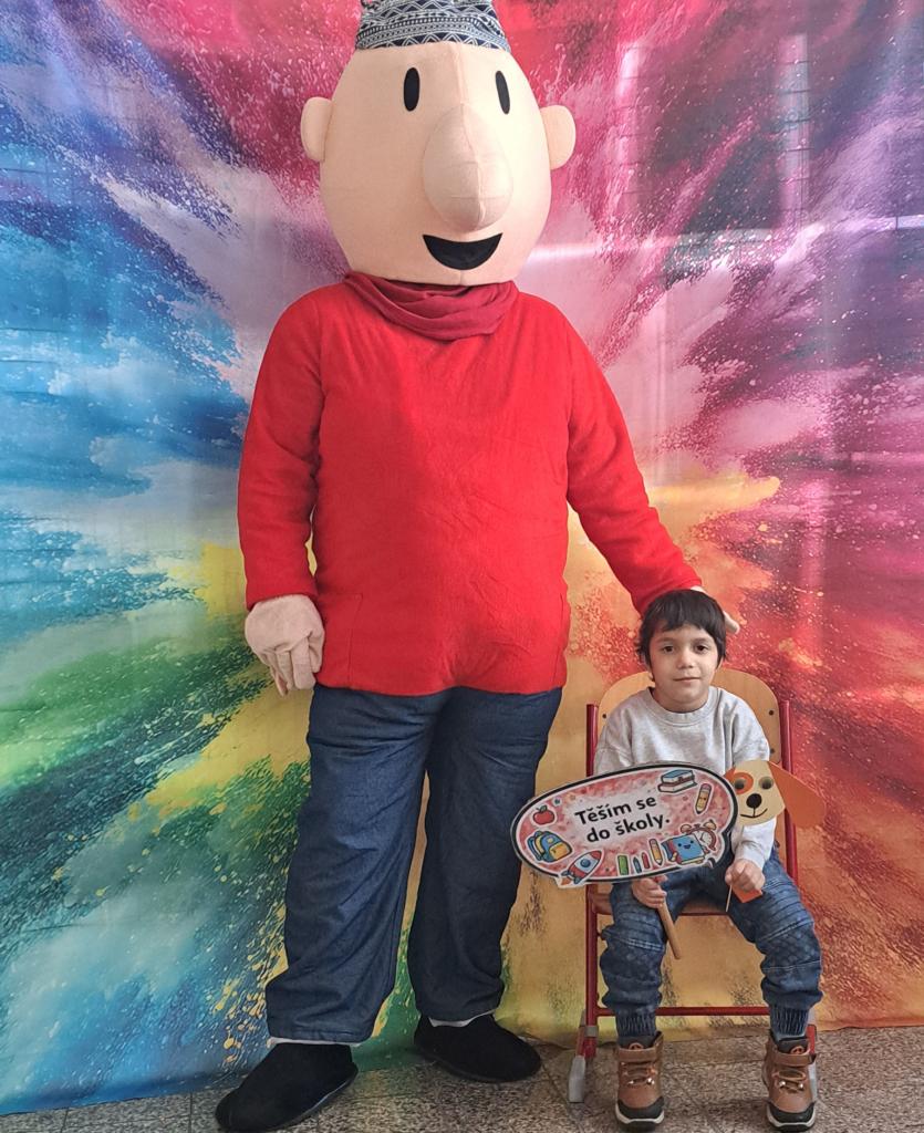 Budoucí prvňáčky i jejich rodiče přivítaly pohádkové postavy Pat a Mat spolu s jednorožcem, které přispěly k příjemné a přátelské atmosféře celého zápisu.